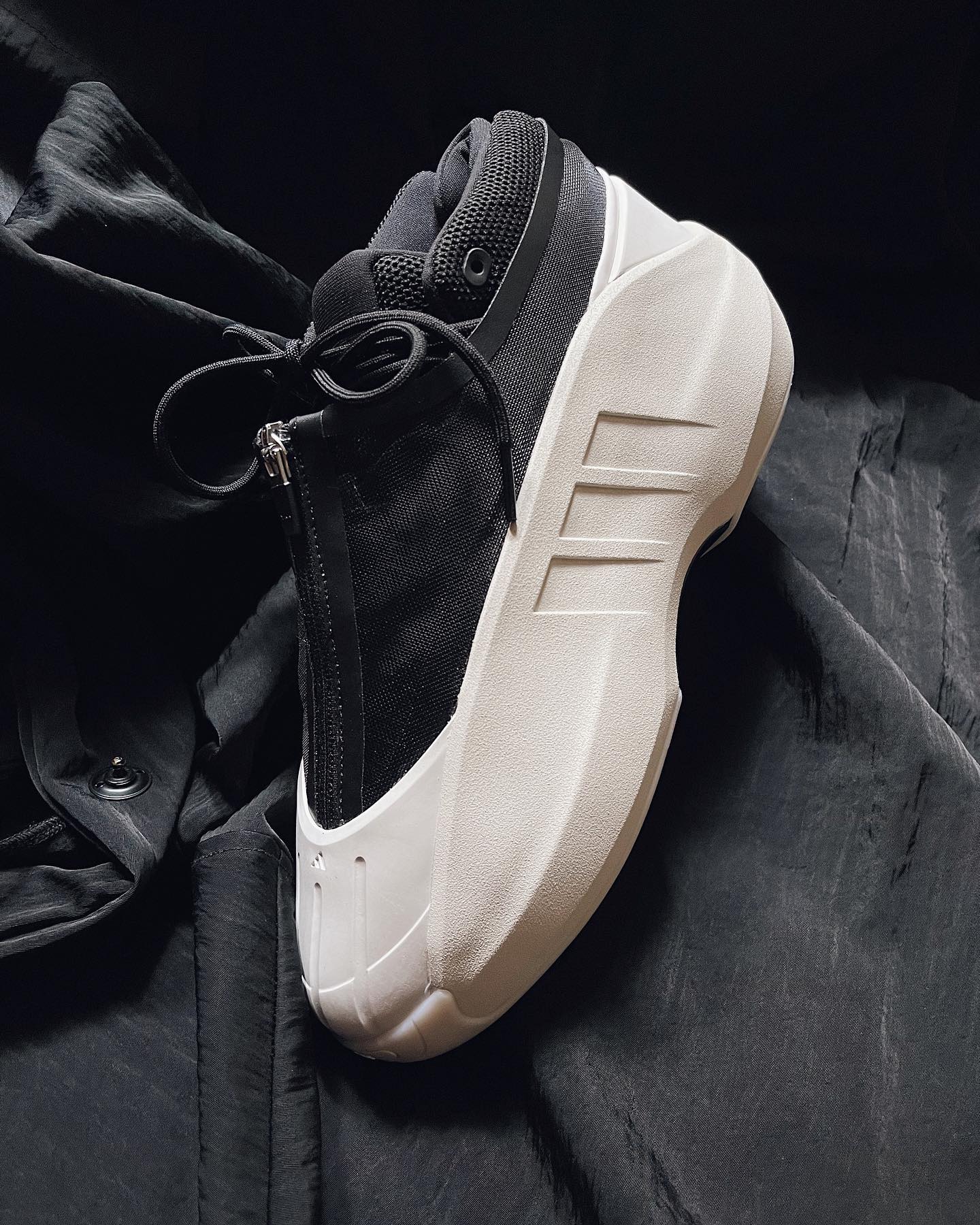 鞋头部分、拉链鞋带系统以及加厚的内衬设定,很明显还原未能大范围市售的 adidas The Kobe III。