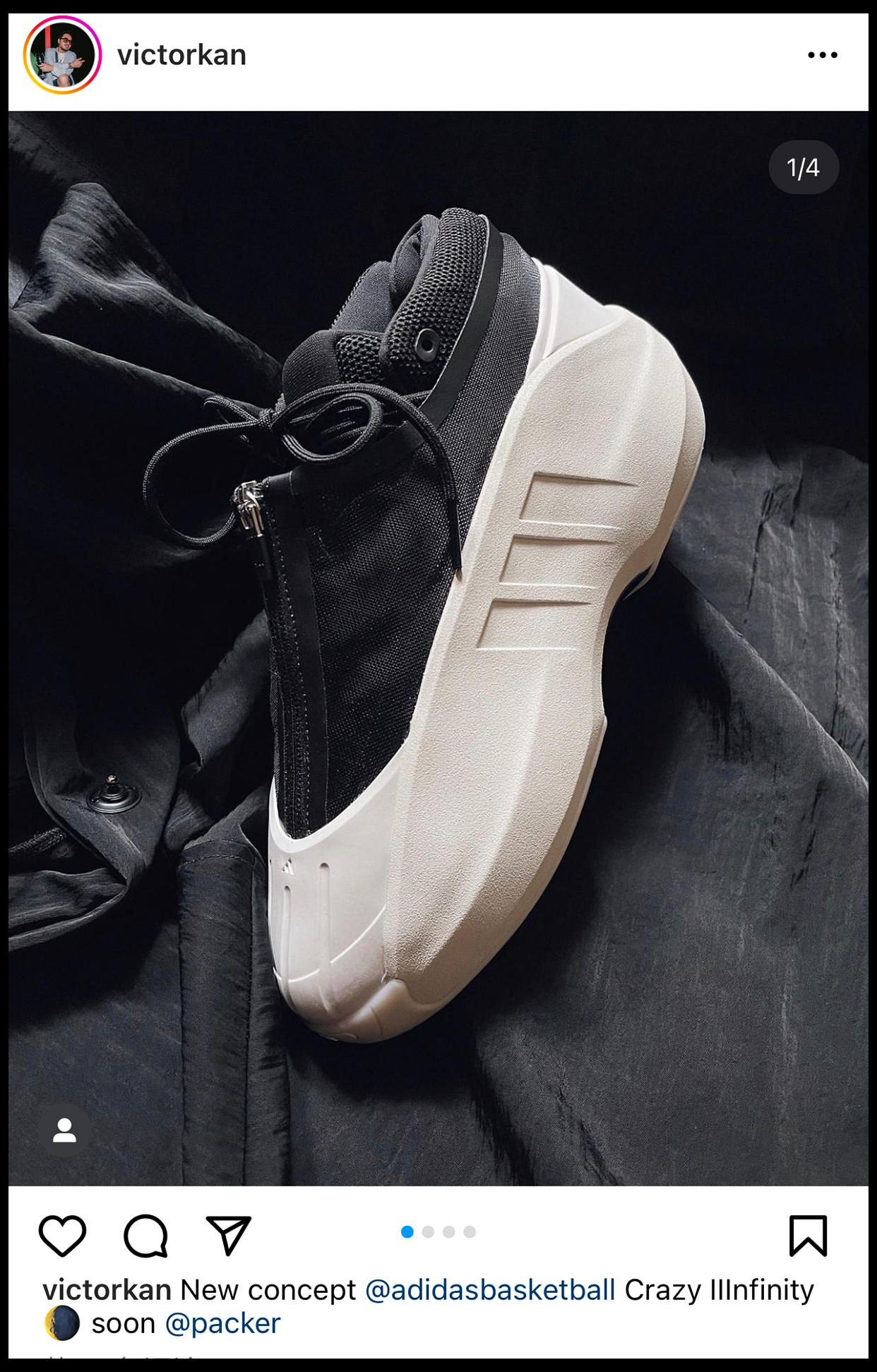 从 PackerShoes 品牌总监 Victor kan 晒鞋所配的文字来看,目前这款引人注目的 adidas Crazy IIInfinity,预计将在近期很快与我们见面,官方定价暂未释出。