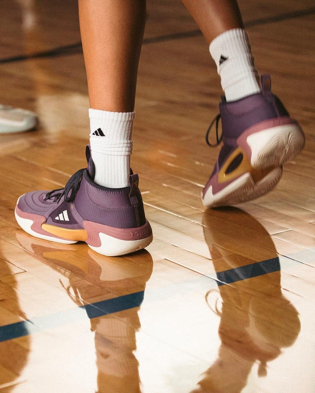 为了迎合这一潮流,adidas 在近期发布了一款专为女生打造的全新实战鞋 Exhibit Select。