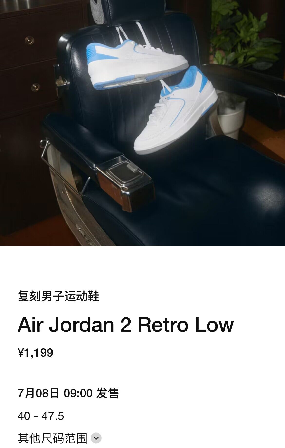 近日,一款北卡蓝配色的 Air Jordan 2 Low 正式上架 SNKRS 中国 APP,将于 7 月 8 日登场。