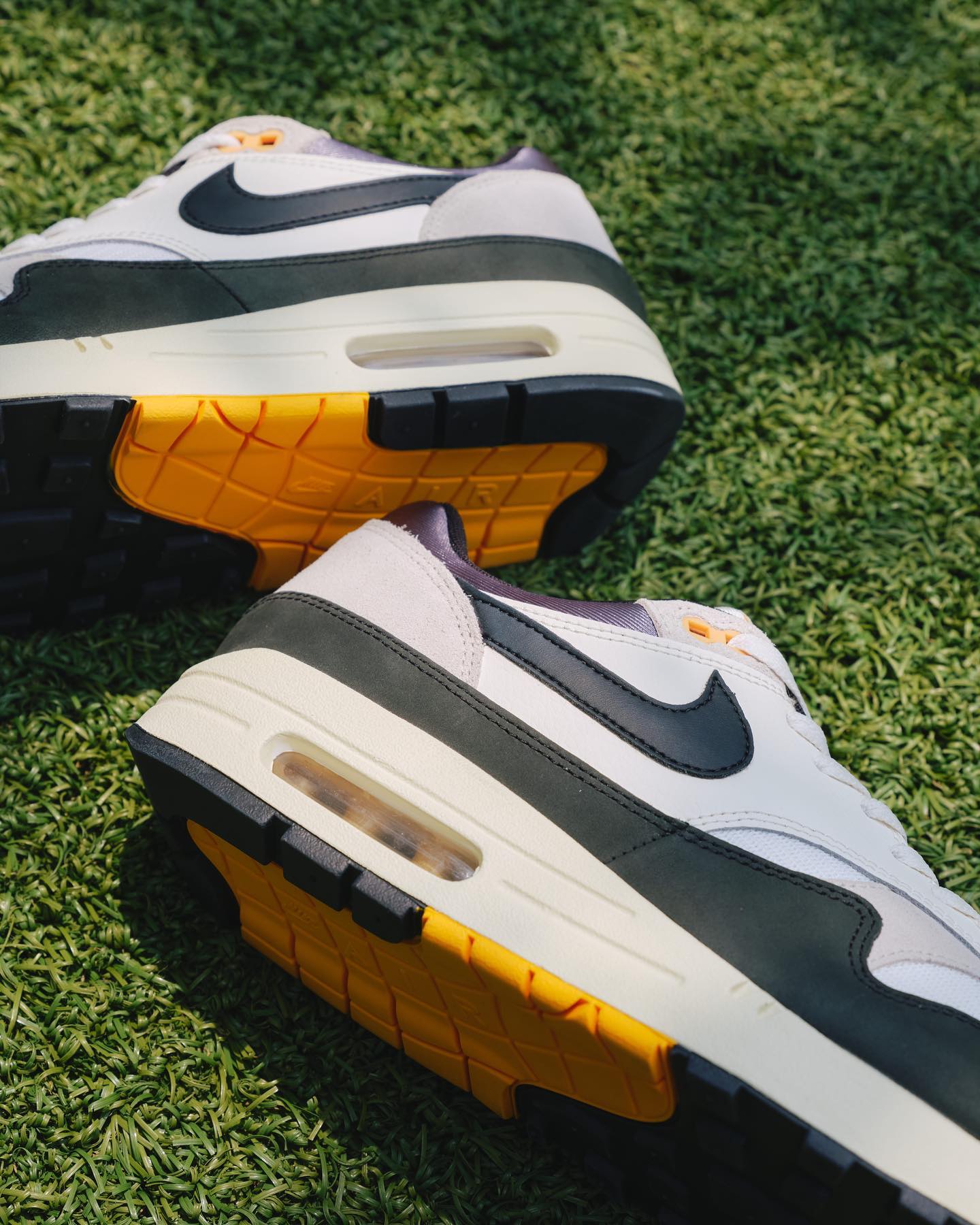 最后以带有开窗式 Air Max 气垫的中底搭配黑黄拼接外底收尾,完善整体造型设计。