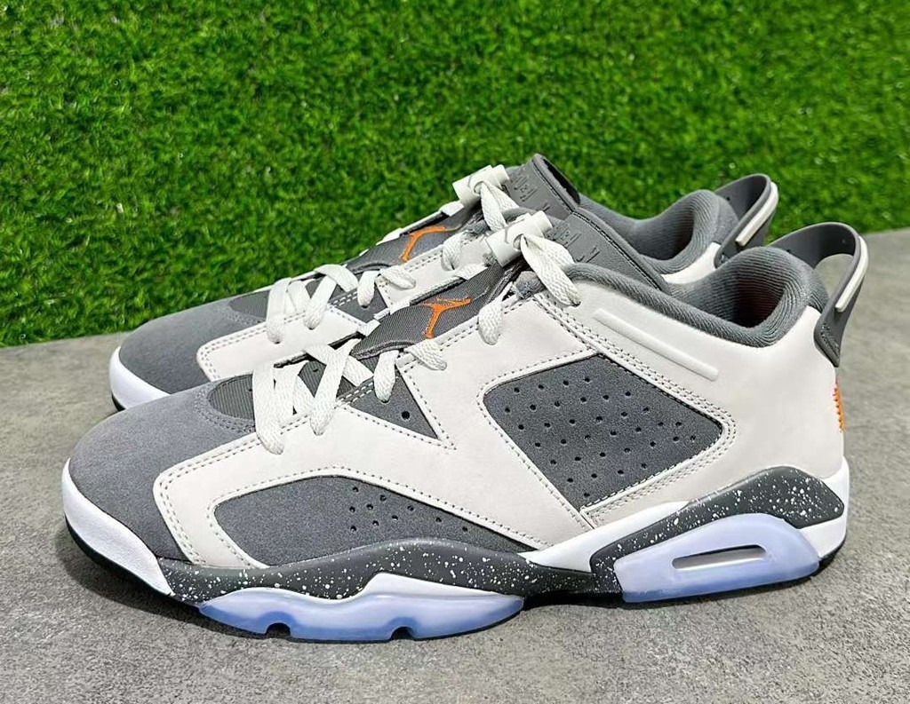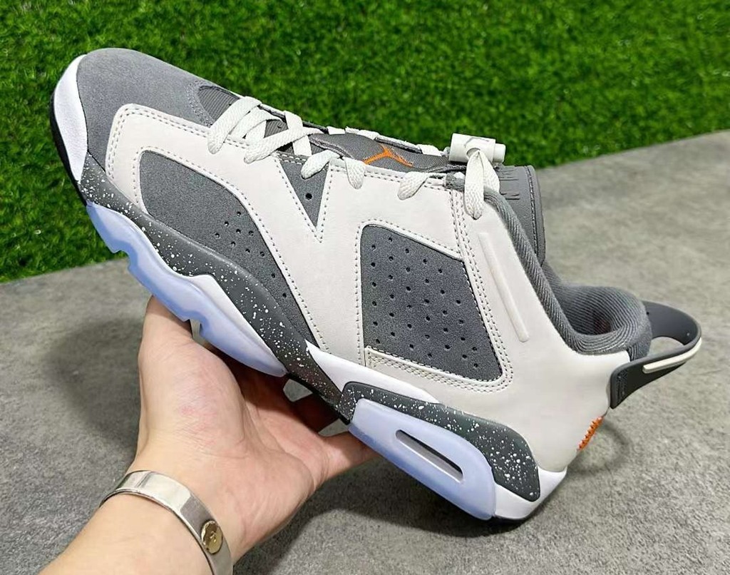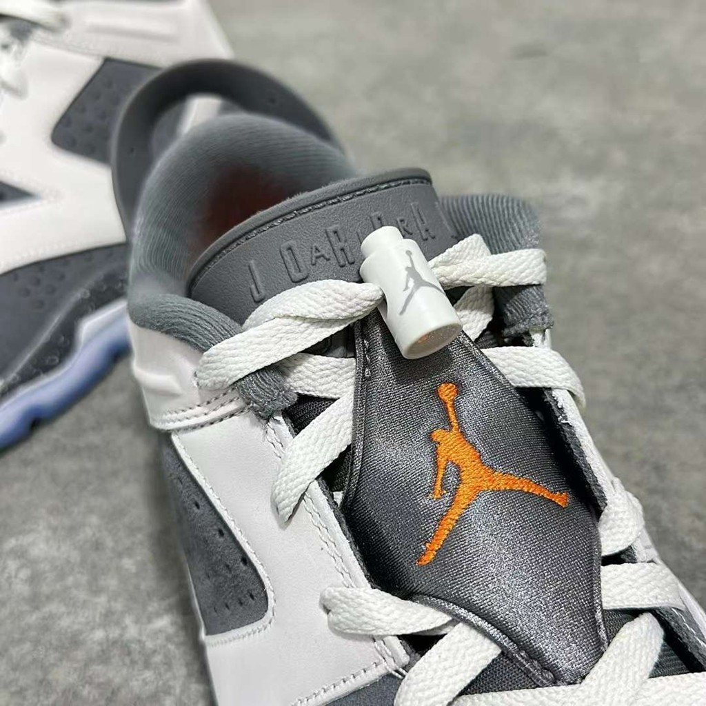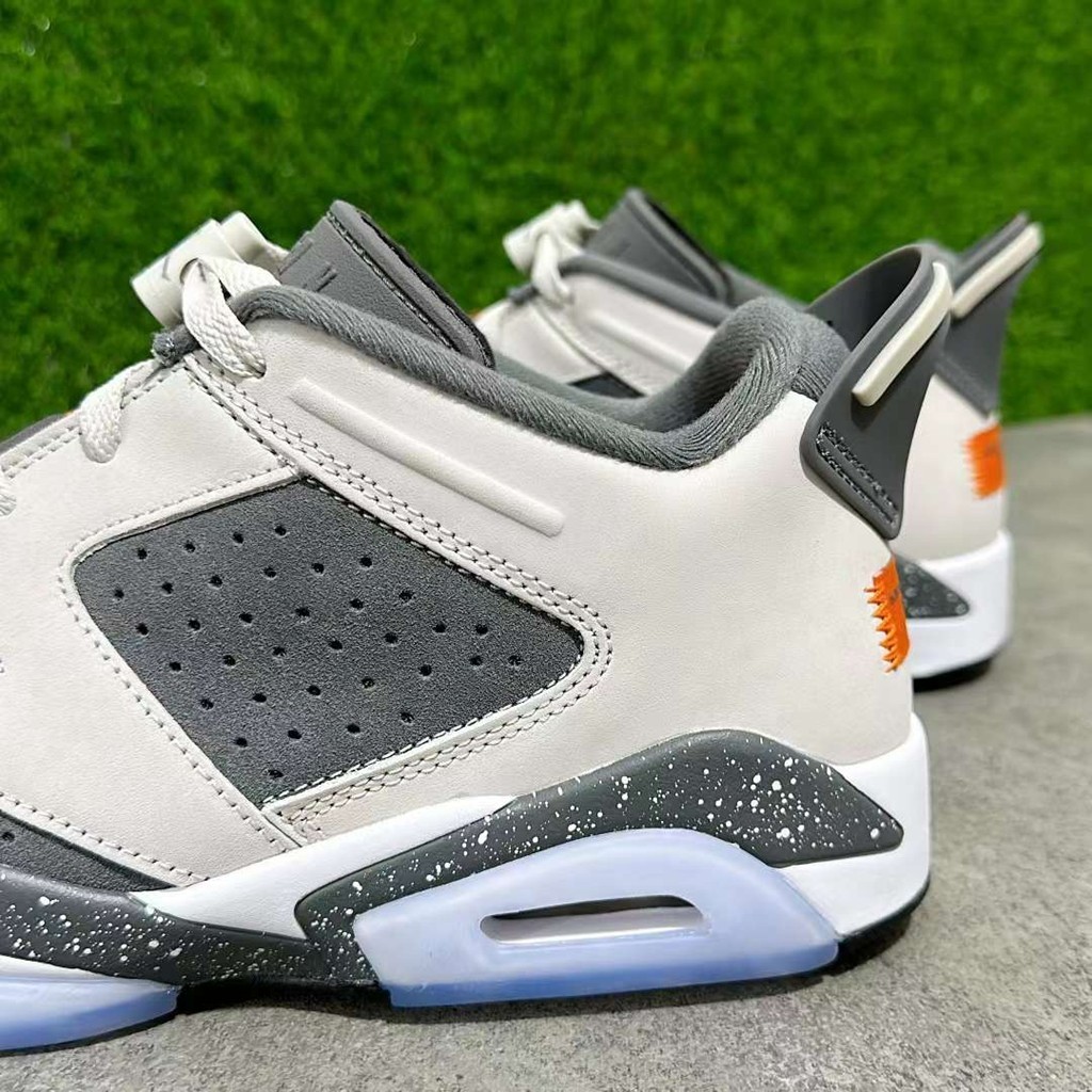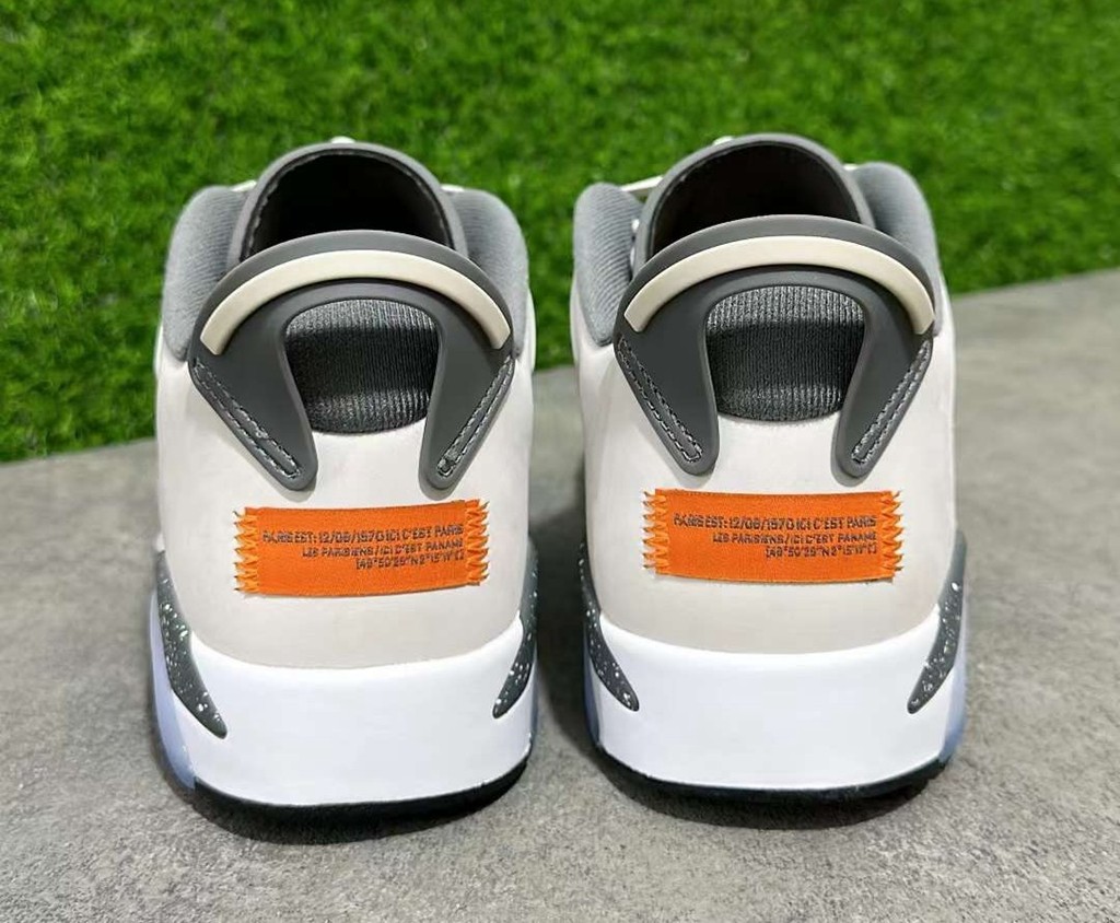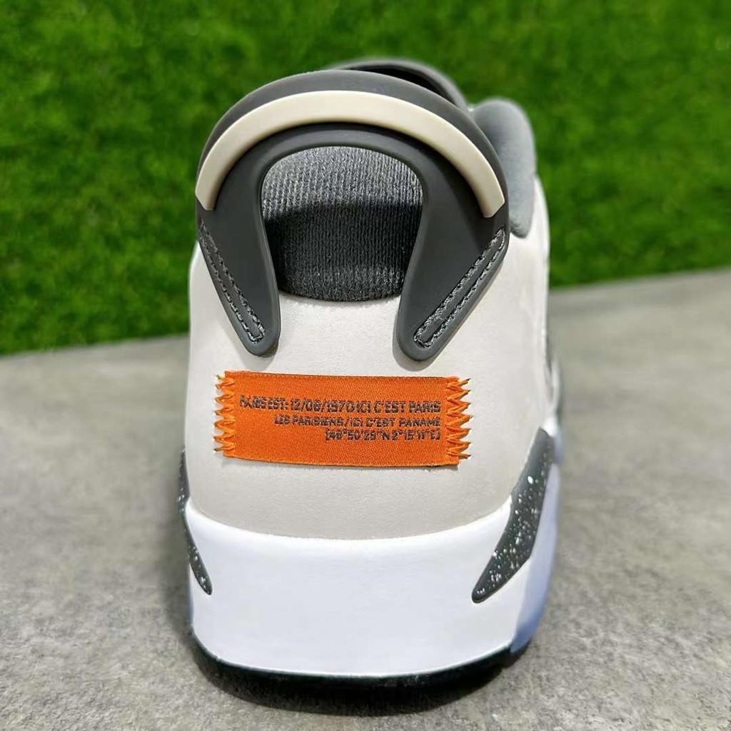此次选用 Air Jordan 6 Low 为基础打造,鞋面白色皮革框架搭配深灰色麂皮,彰显质感层次。