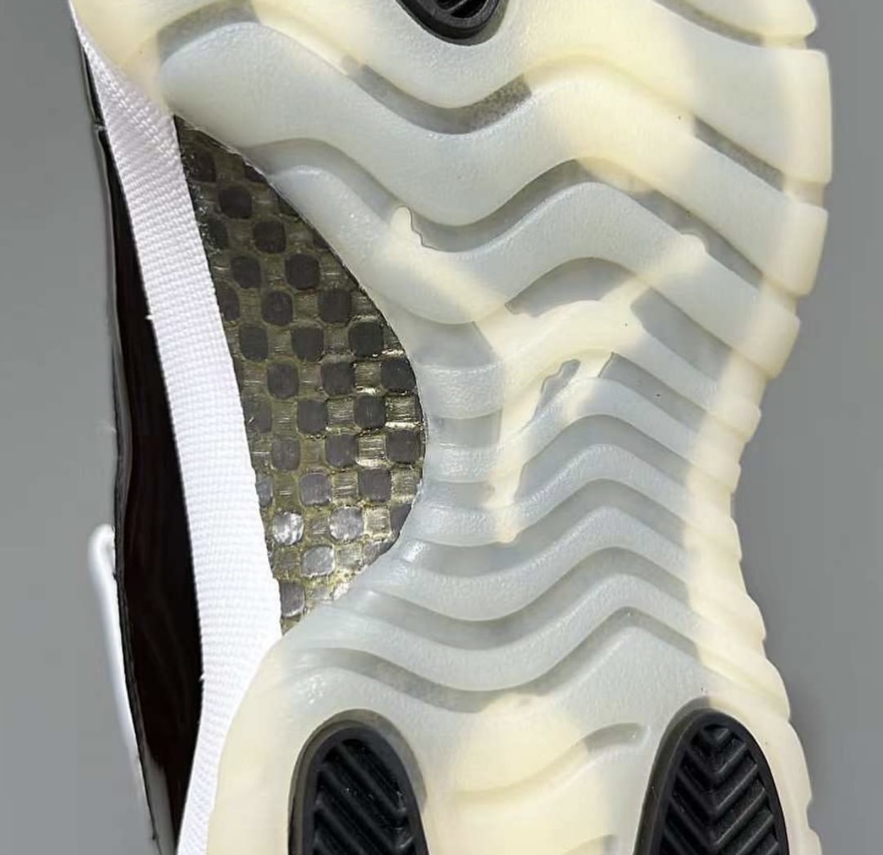 最后白色中底搭配半透明外底收尾,完善整双鞋设计。