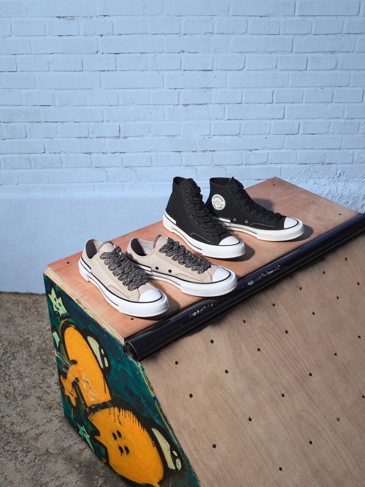说回鞋款本身,全新系列将 All Star 和 Chuck 70 鞋型进行了二次创作。
