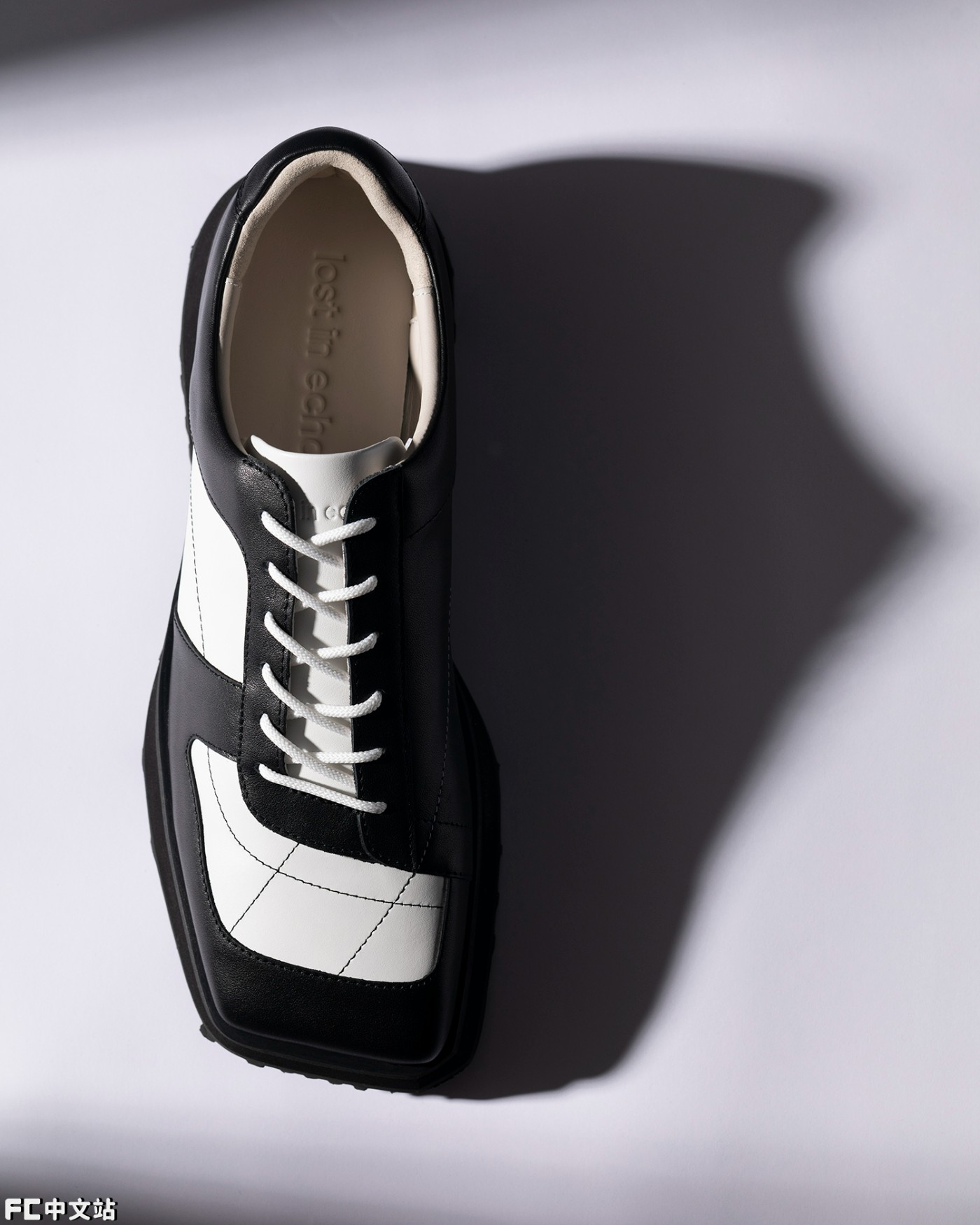 lostinecho23春夏新款不对称斜方头拼色休闲板鞋熊猫鞋小方脸情侣