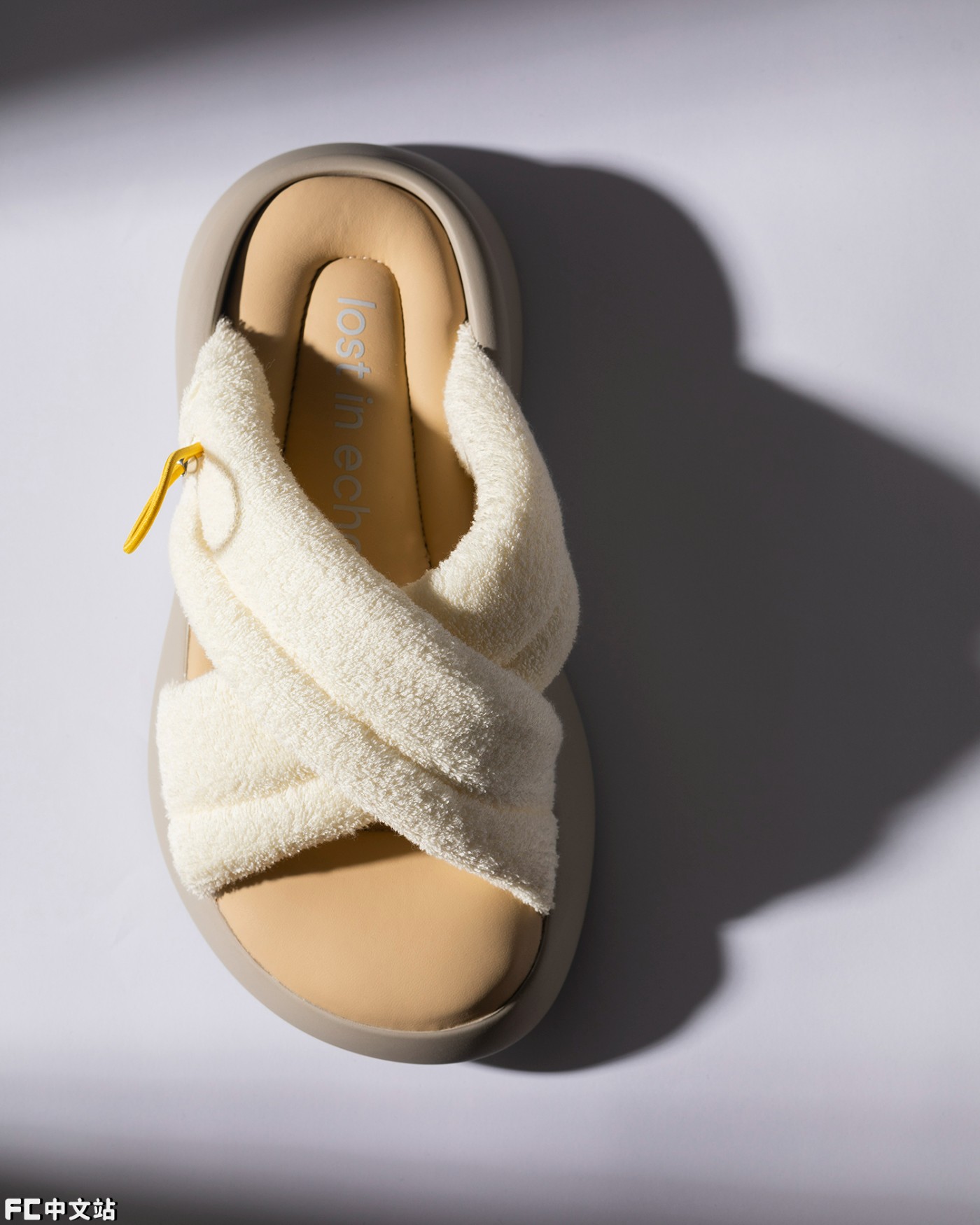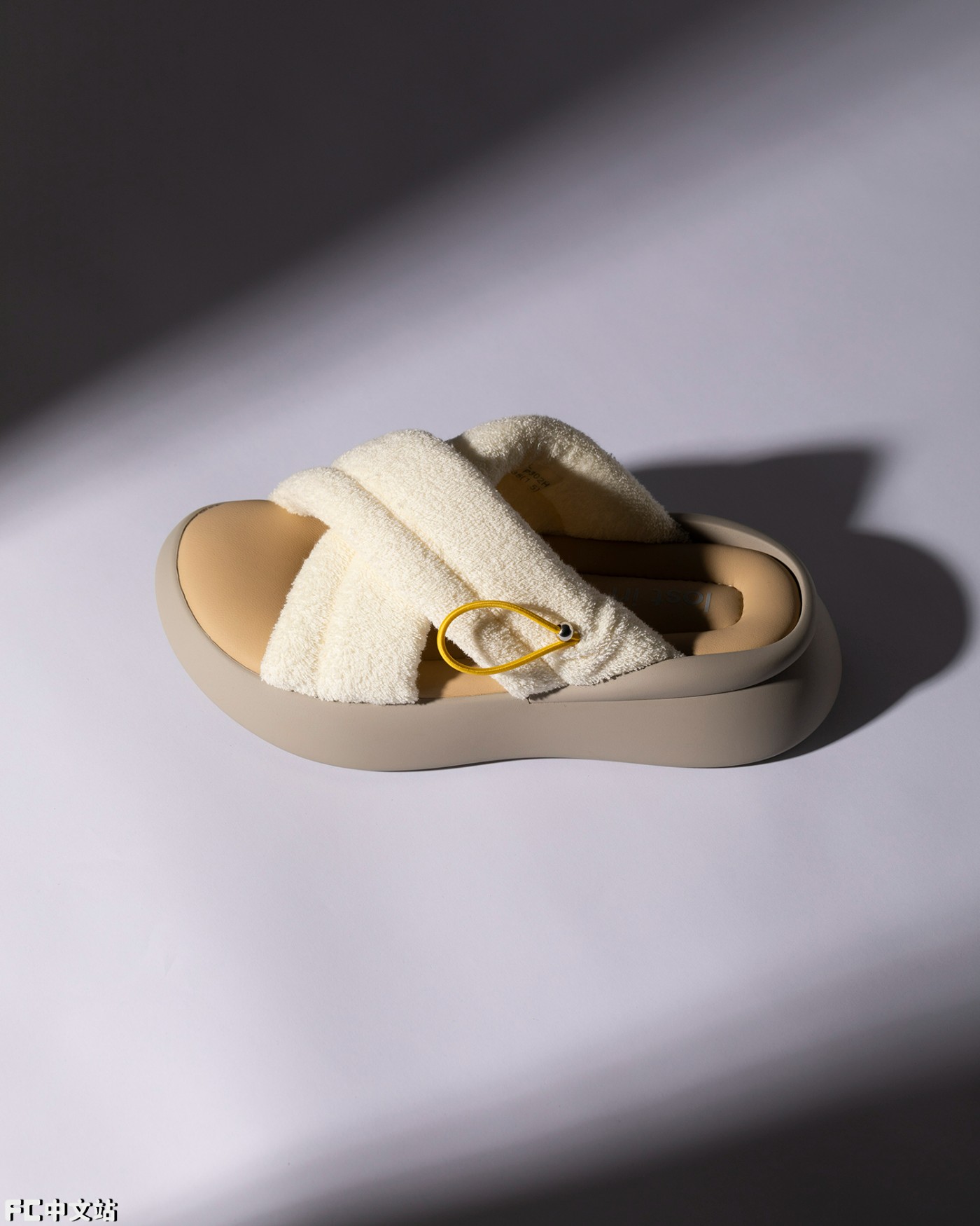 除了板鞋,这双 lost in echo 交叉绑带拖鞋也有不少明星上脚。