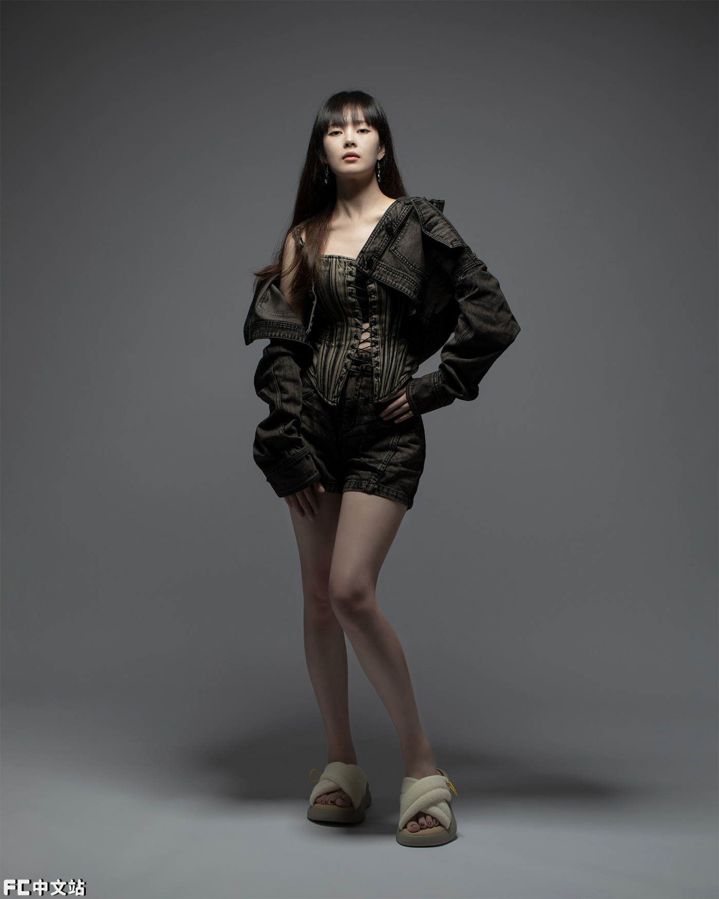 一袭牛仔套装搭配厚底拖鞋,独特的反差感,出街回头率肯定低不了。