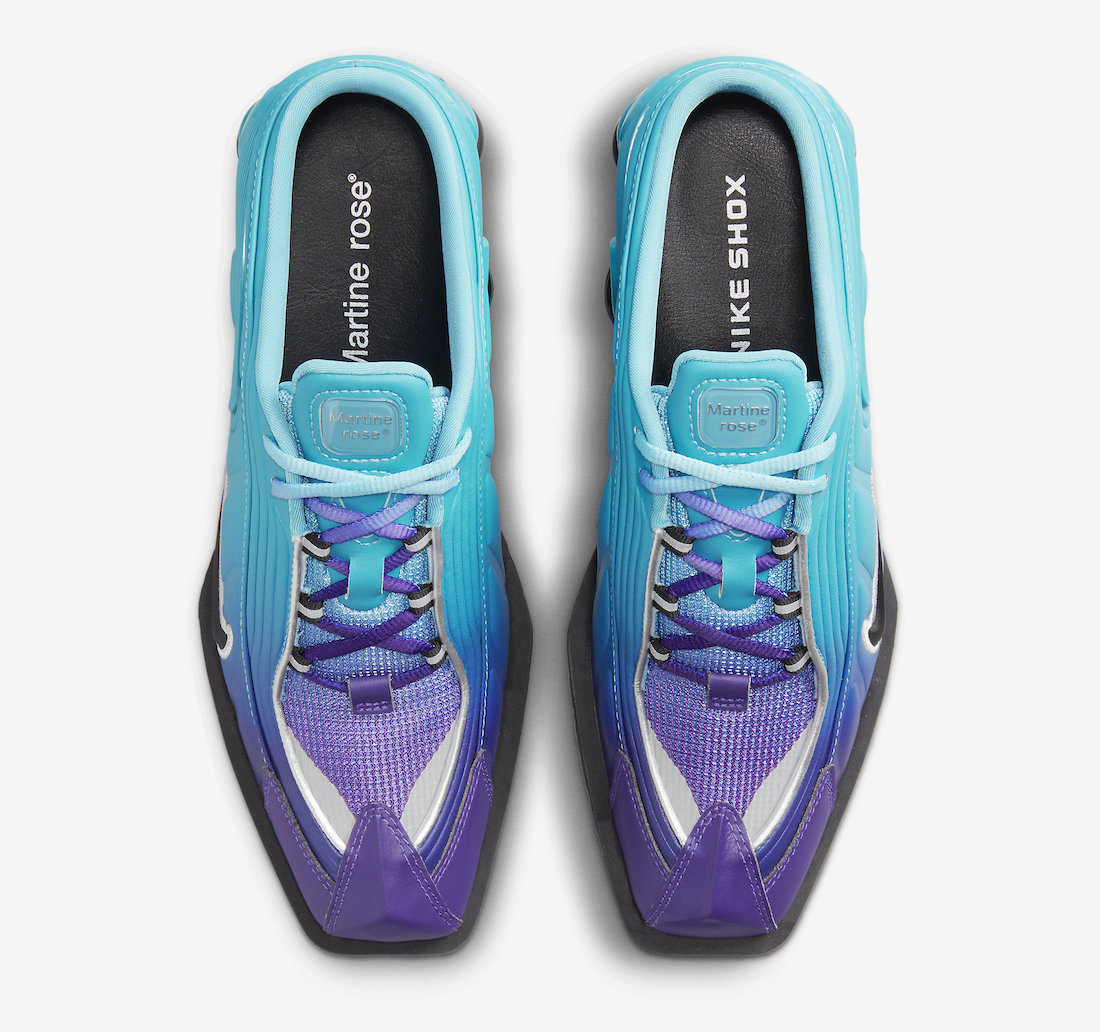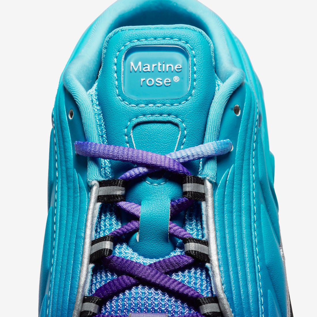 蓝紫渐变的鞋带与鞋身呼应,鞋舌处带有 Martine Rose 字样,彰显联名身份。