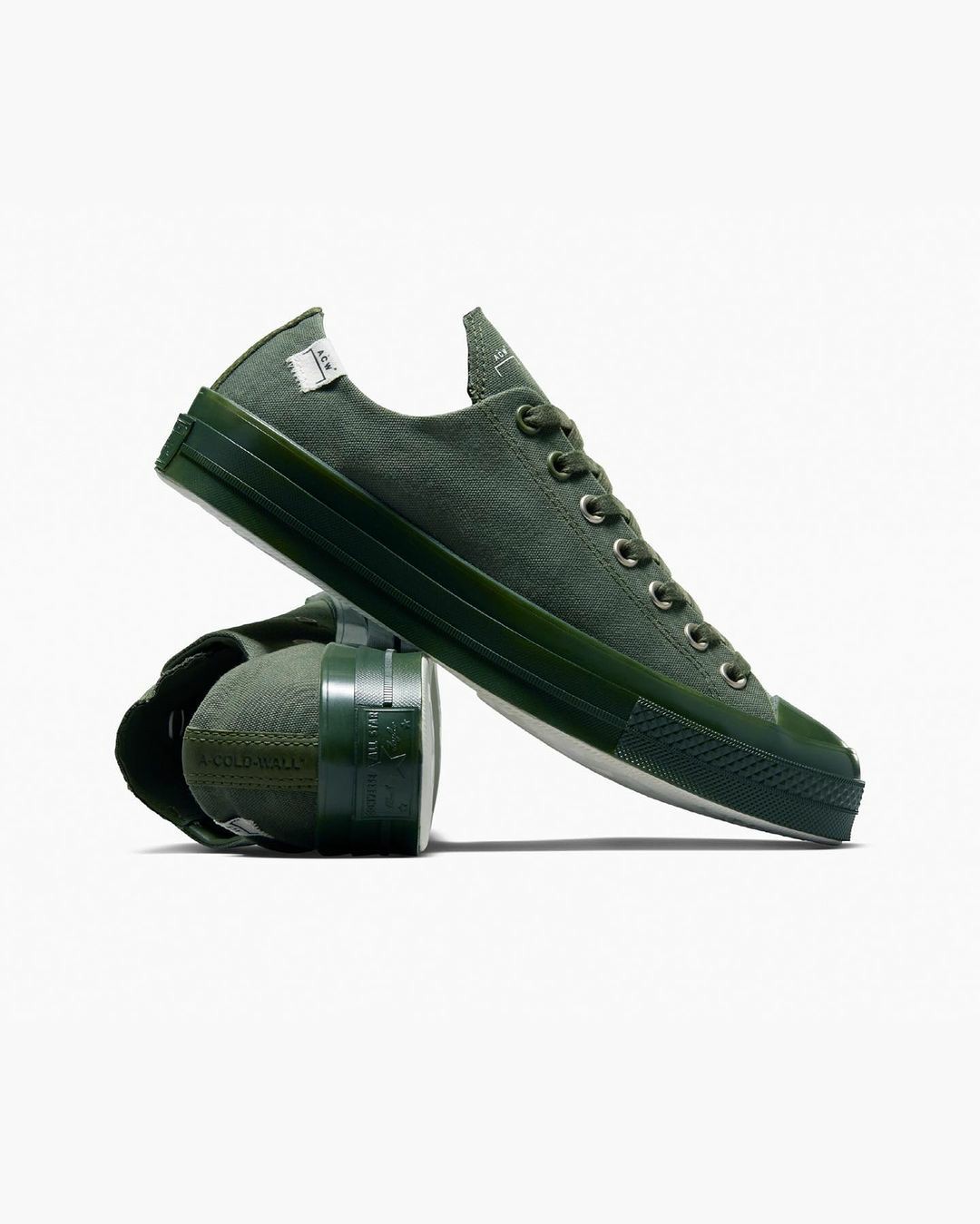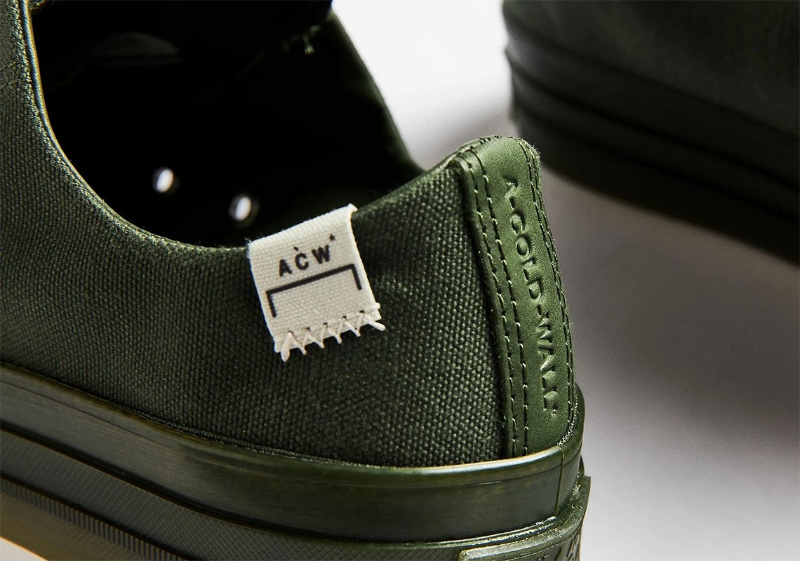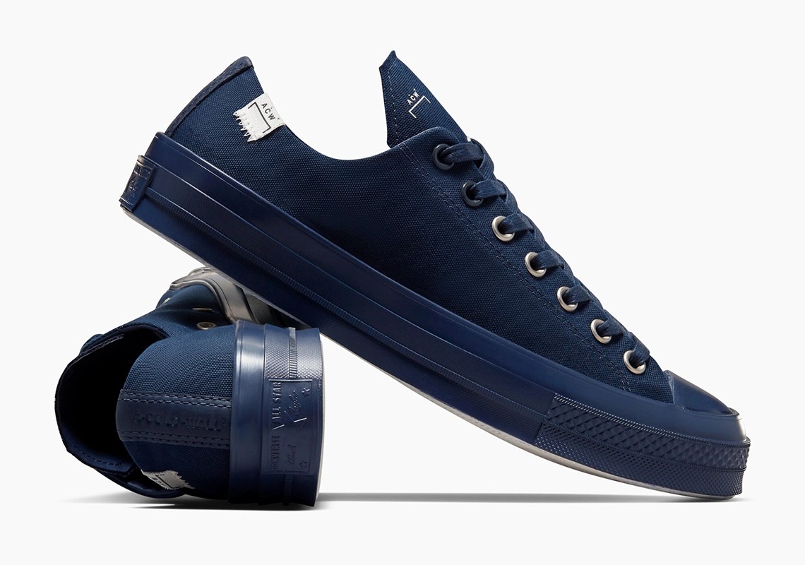 分别在鞋舌、后跟甚至橡胶鞋头上印有 A-COLD-WALL* 和 Converse Logo。
