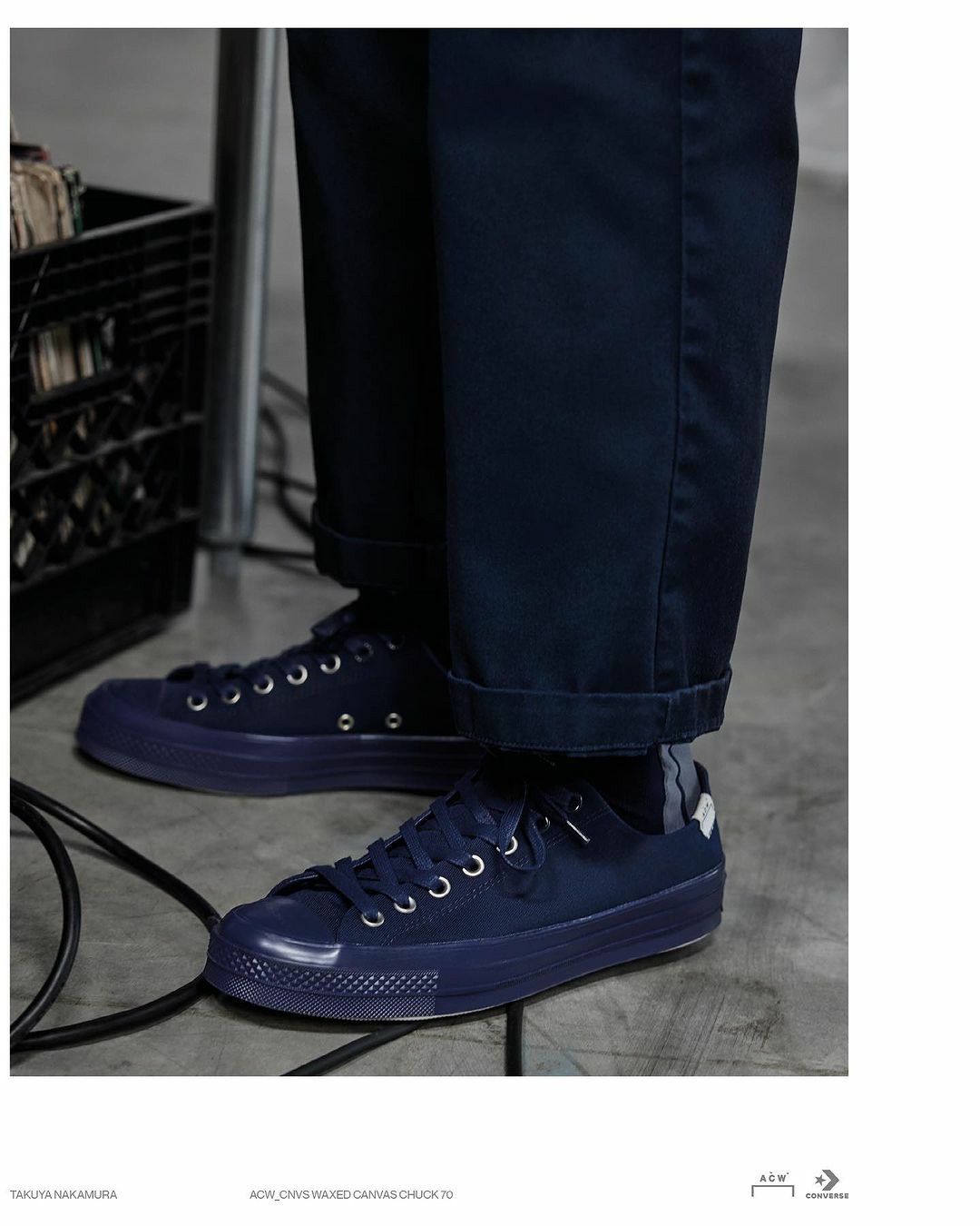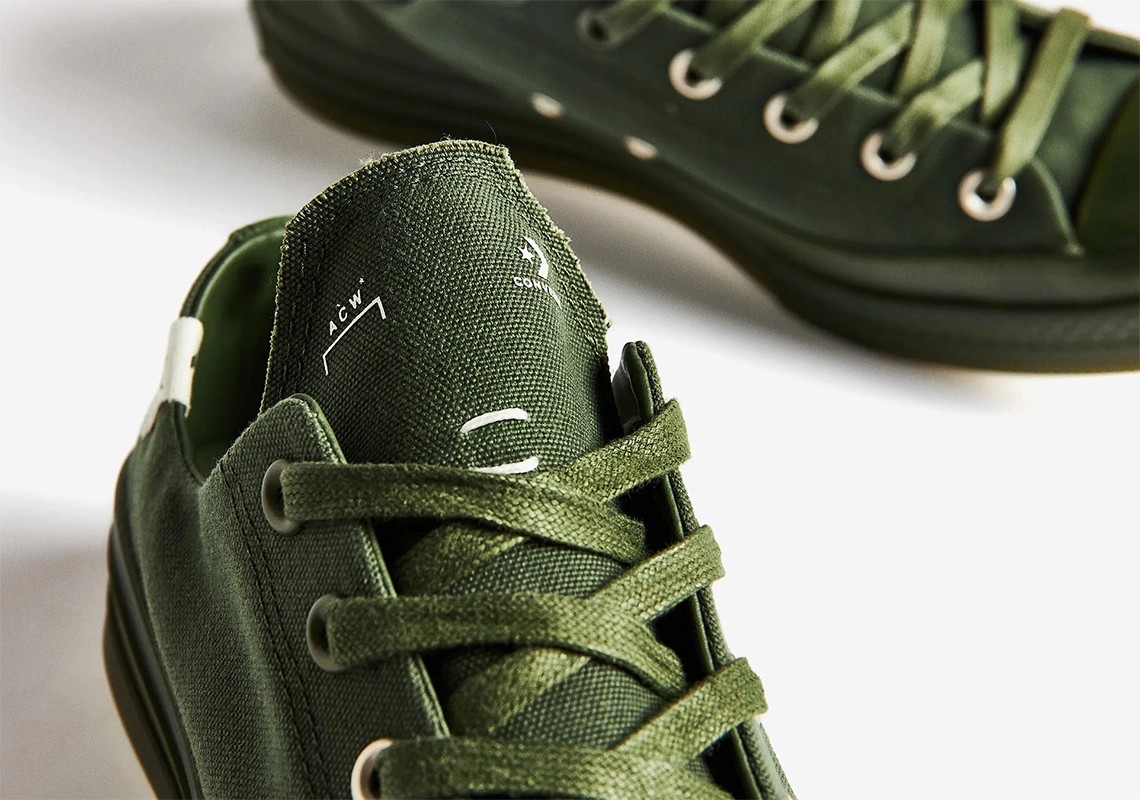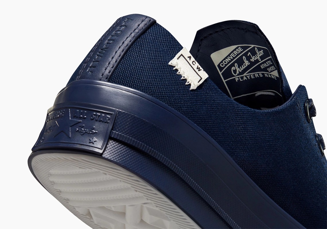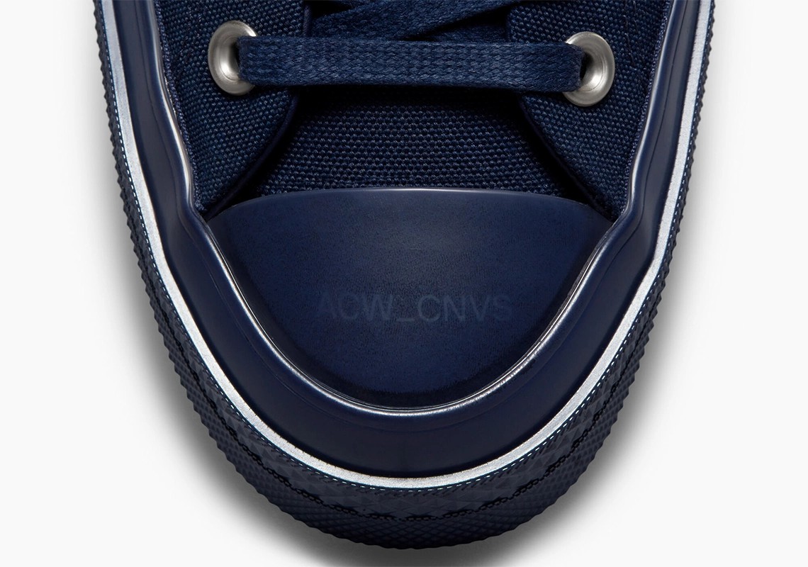 分别在鞋舌、后跟甚至橡胶鞋头上印有 A-COLD-WALL* 和 Converse Logo。