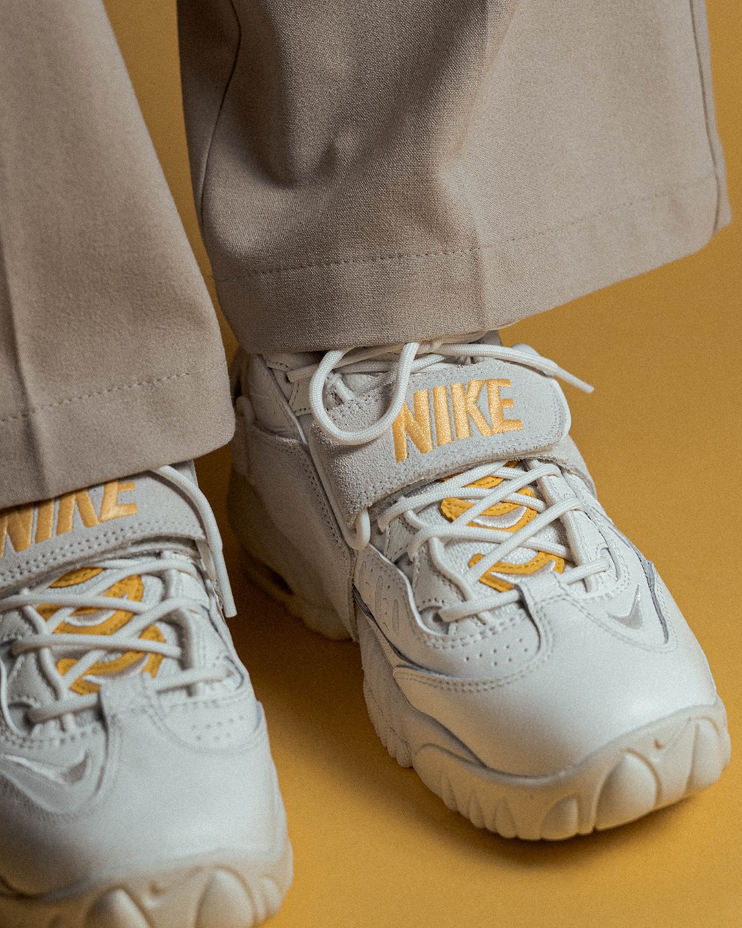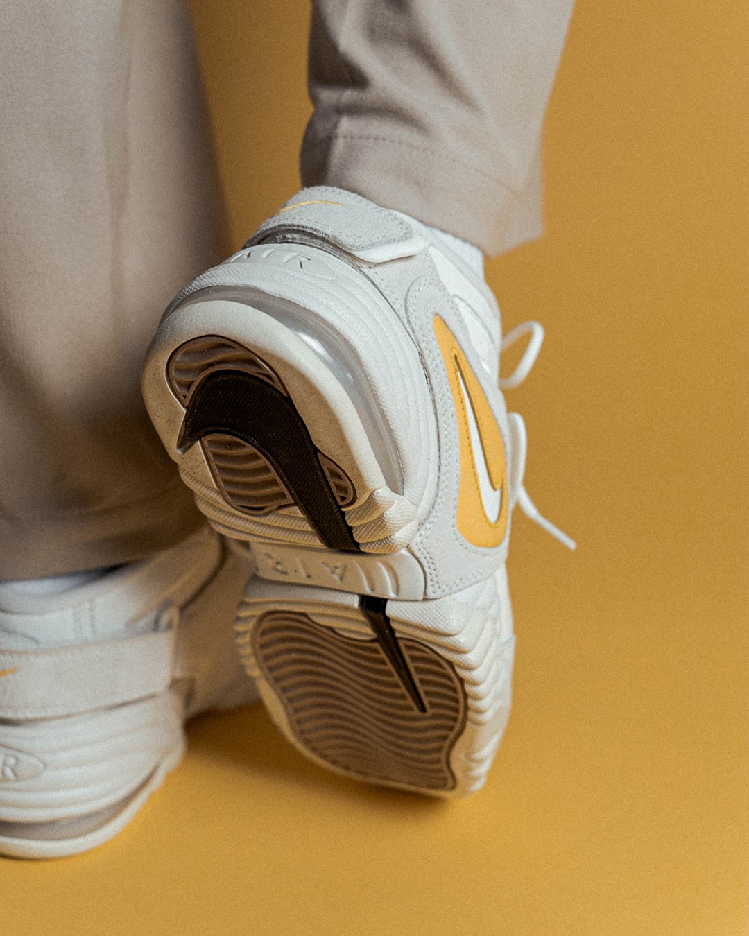 整双鞋采用大面积白色打造,辅以黄色妆点,视觉效果十分清爽。