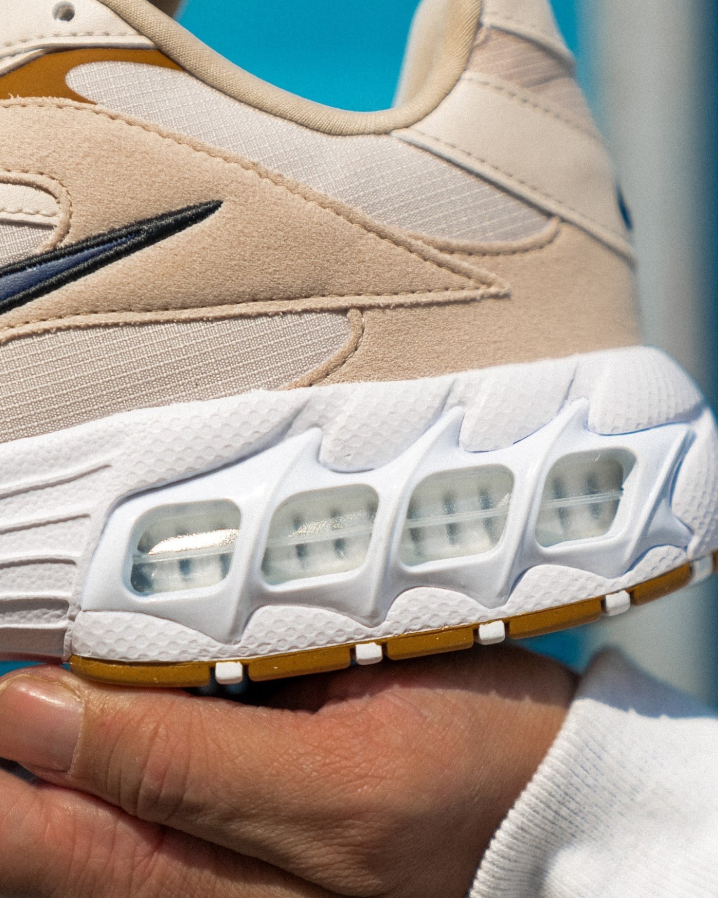 有意思的是,后掌 Zoom 外的四块镂空开窗,与 Stüssy 联名造型极为相似。