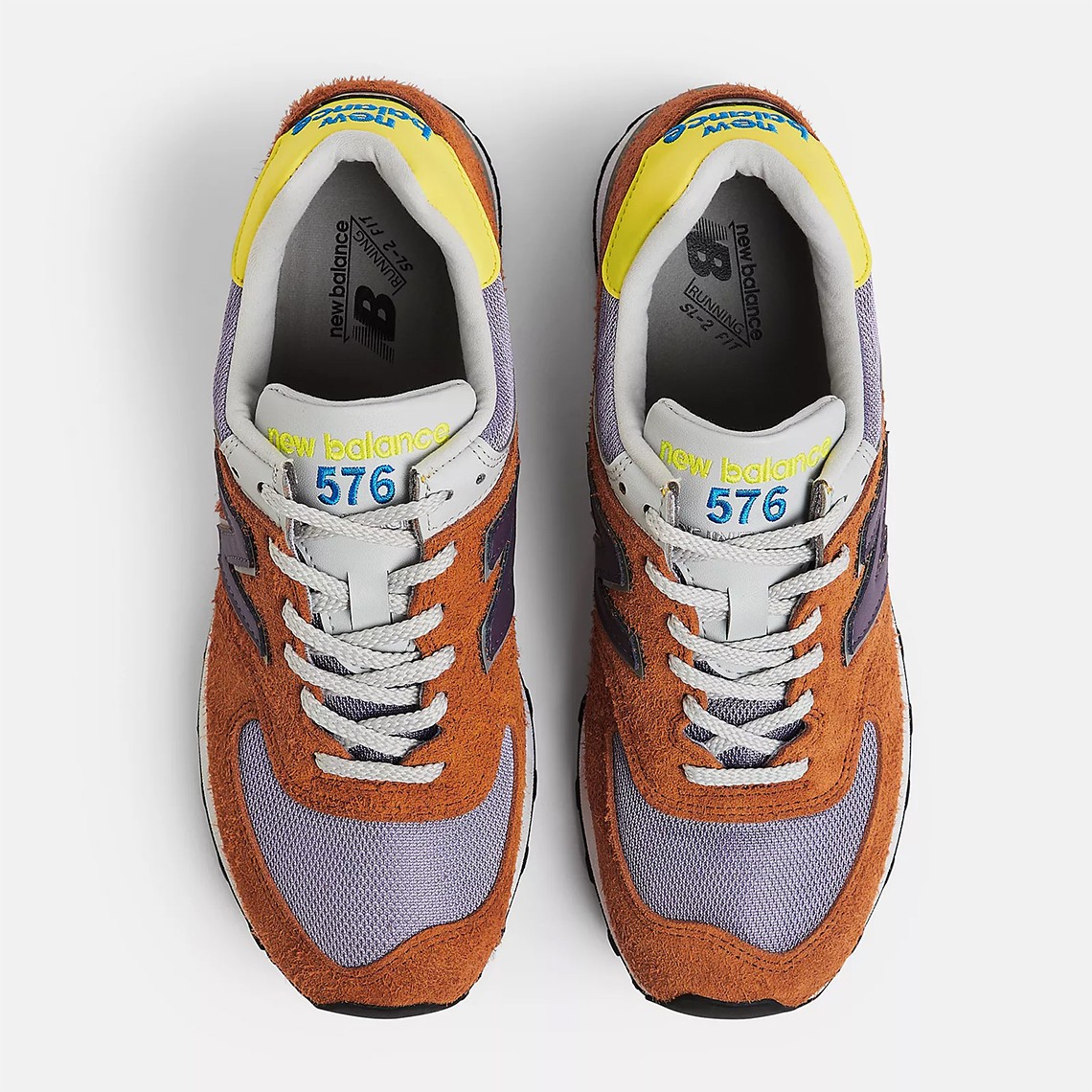 整双鞋采用大面积棕色为主调,辅以紫色与黄色妆点,视觉效果显著。