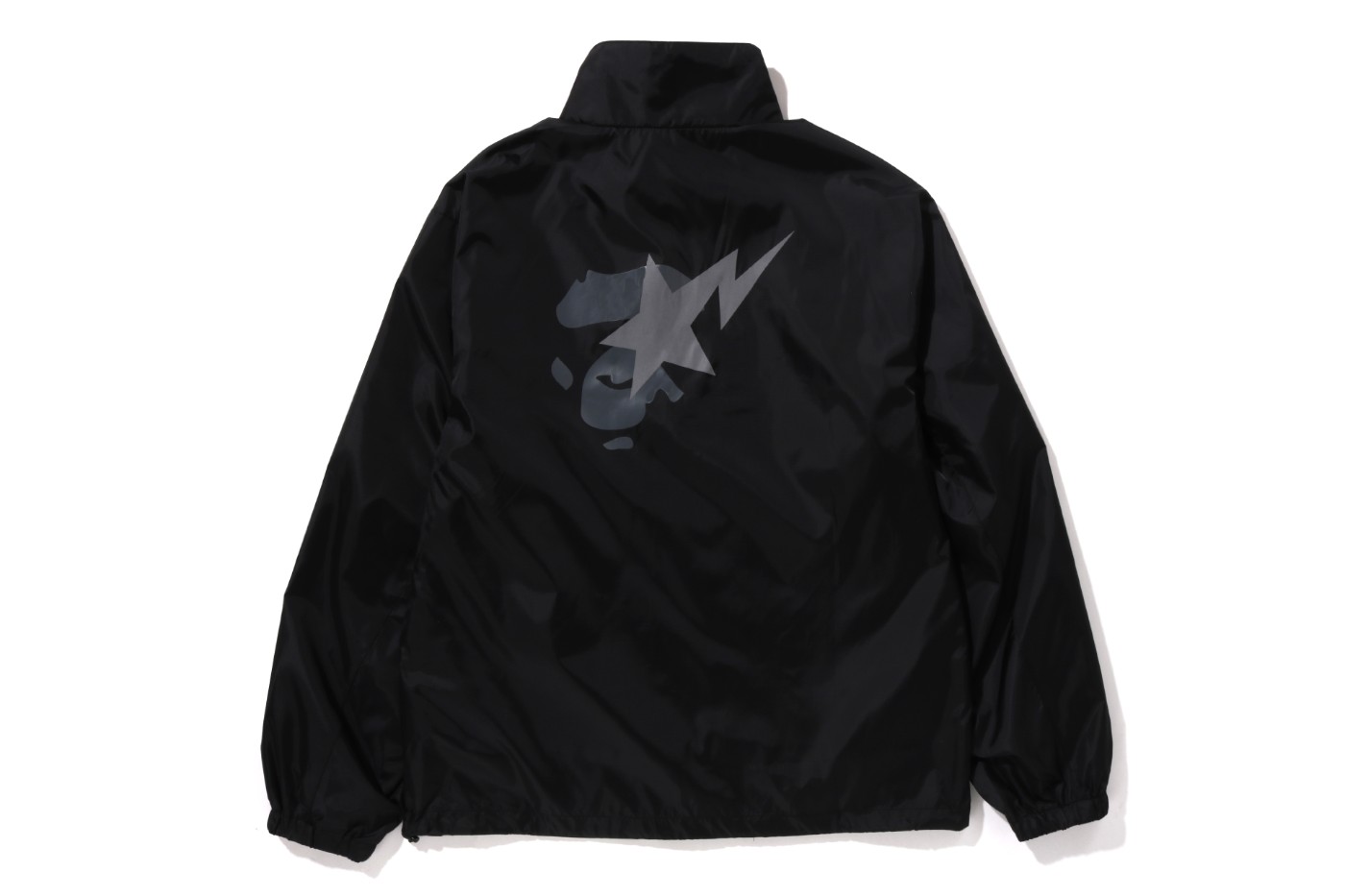 小编最喜爱的还是要数这次的夹克了,整体全黑饰人,背后印有经典的猿人 Logo,真的不要太帅,街头属性拉满。