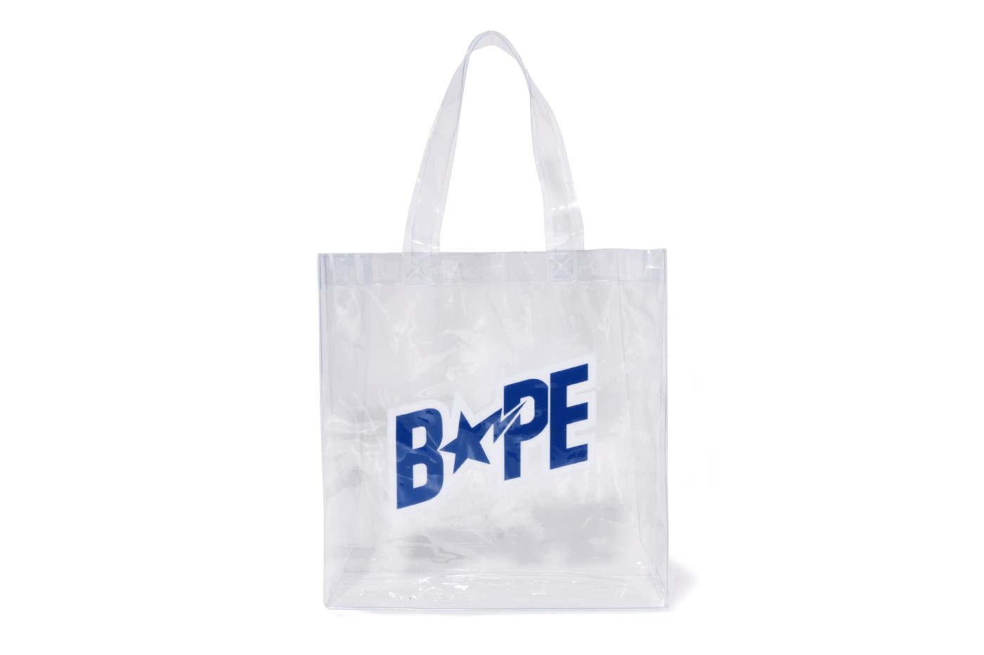 手提袋同样值得关注,全透明设计上面印有简单的 BAPE® Logo,彰显身份。