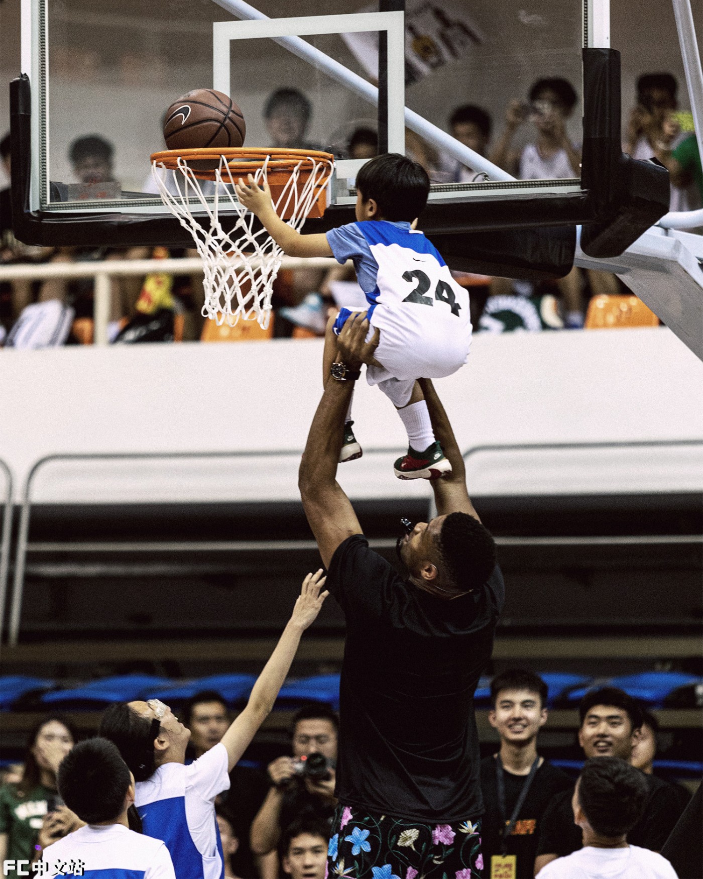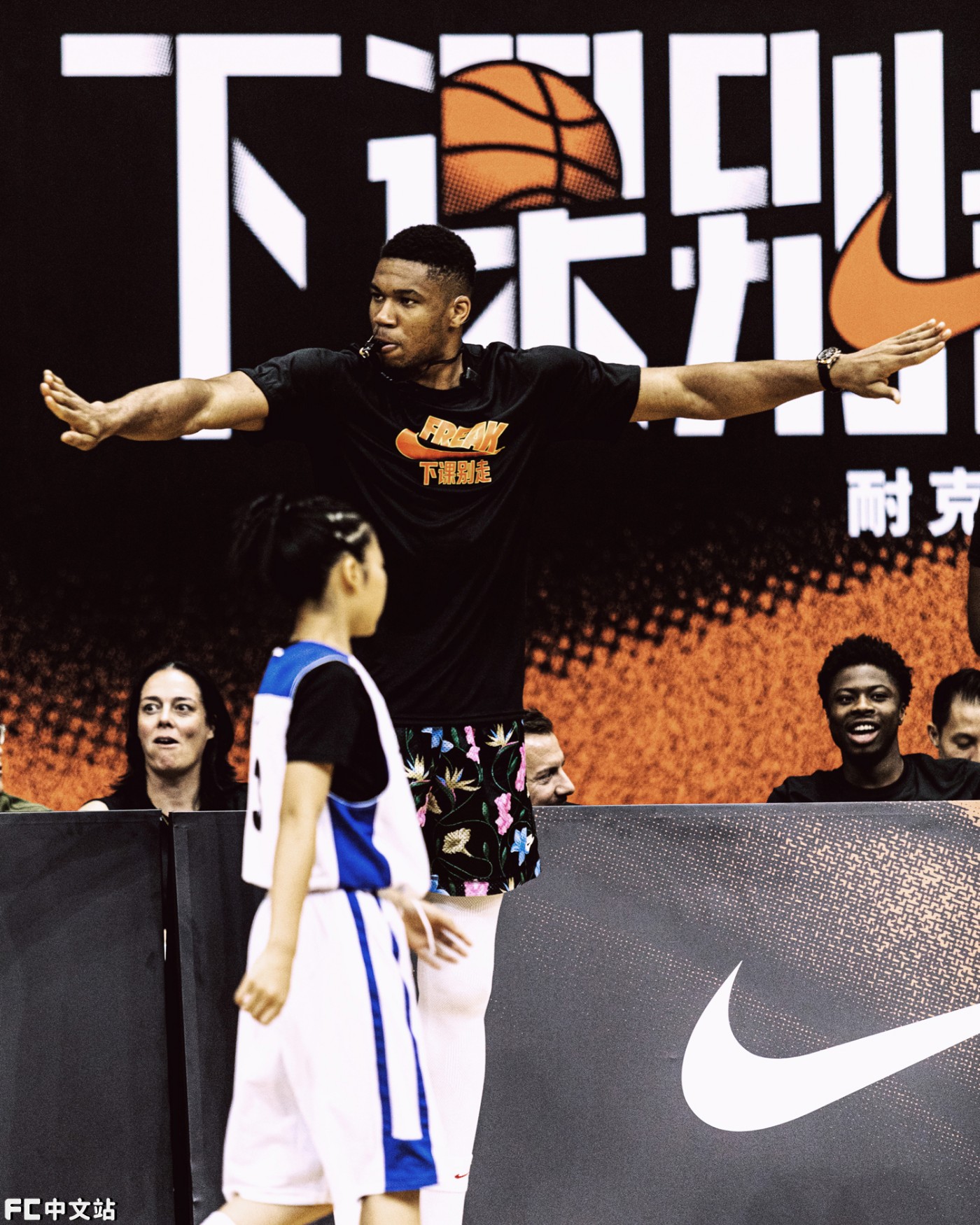 当晚「字母哥」化身教练、导师与裁判,不仅为小球员们示范 “欧洲步” 的要领。