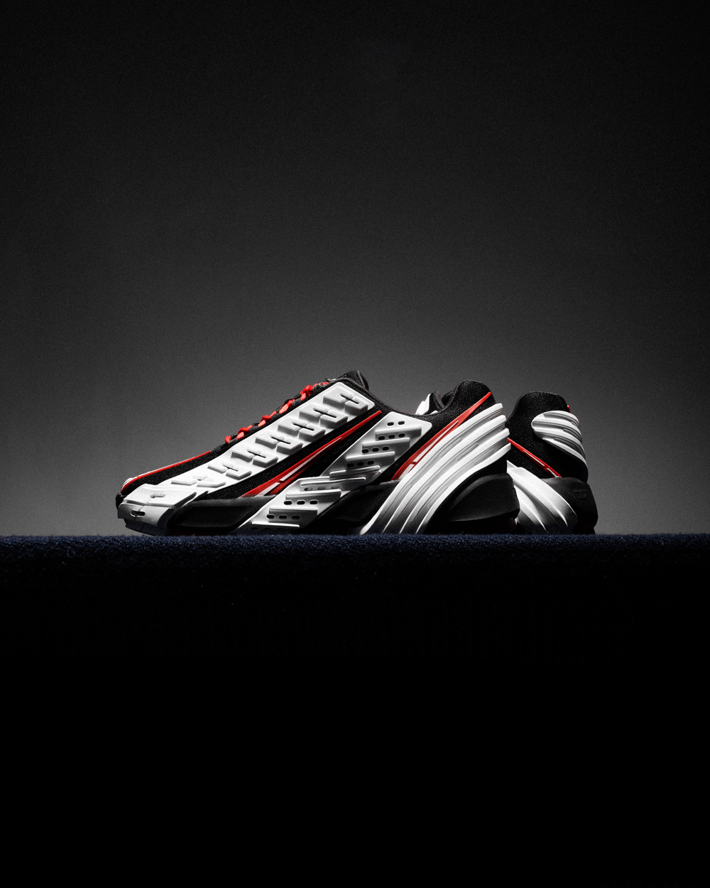 粗犷的硬派美学设计,白色橡胶覆盖鞋身,带来另类视觉效果。
