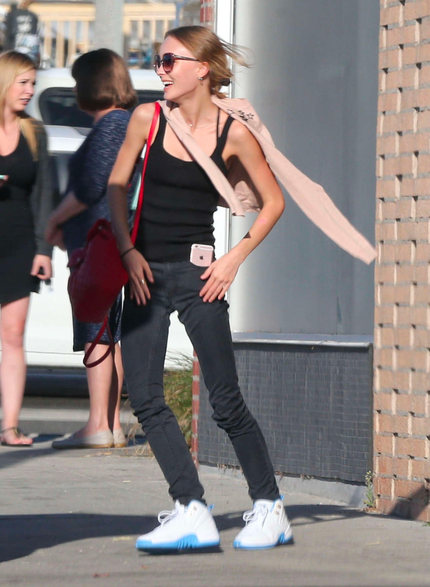 不过这些所有球鞋都不足为奇,真正能展现小编列文虎克能力的,必须得是 Lily-Rose Depp 早年在 INS 晒出的「飞跃」!