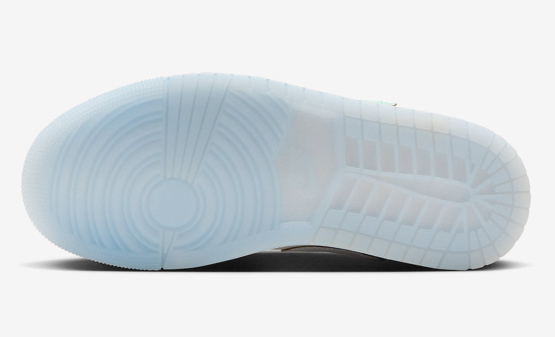 最后以白色中底搭配水晶半透明外底收尾,完善整体造型设计。