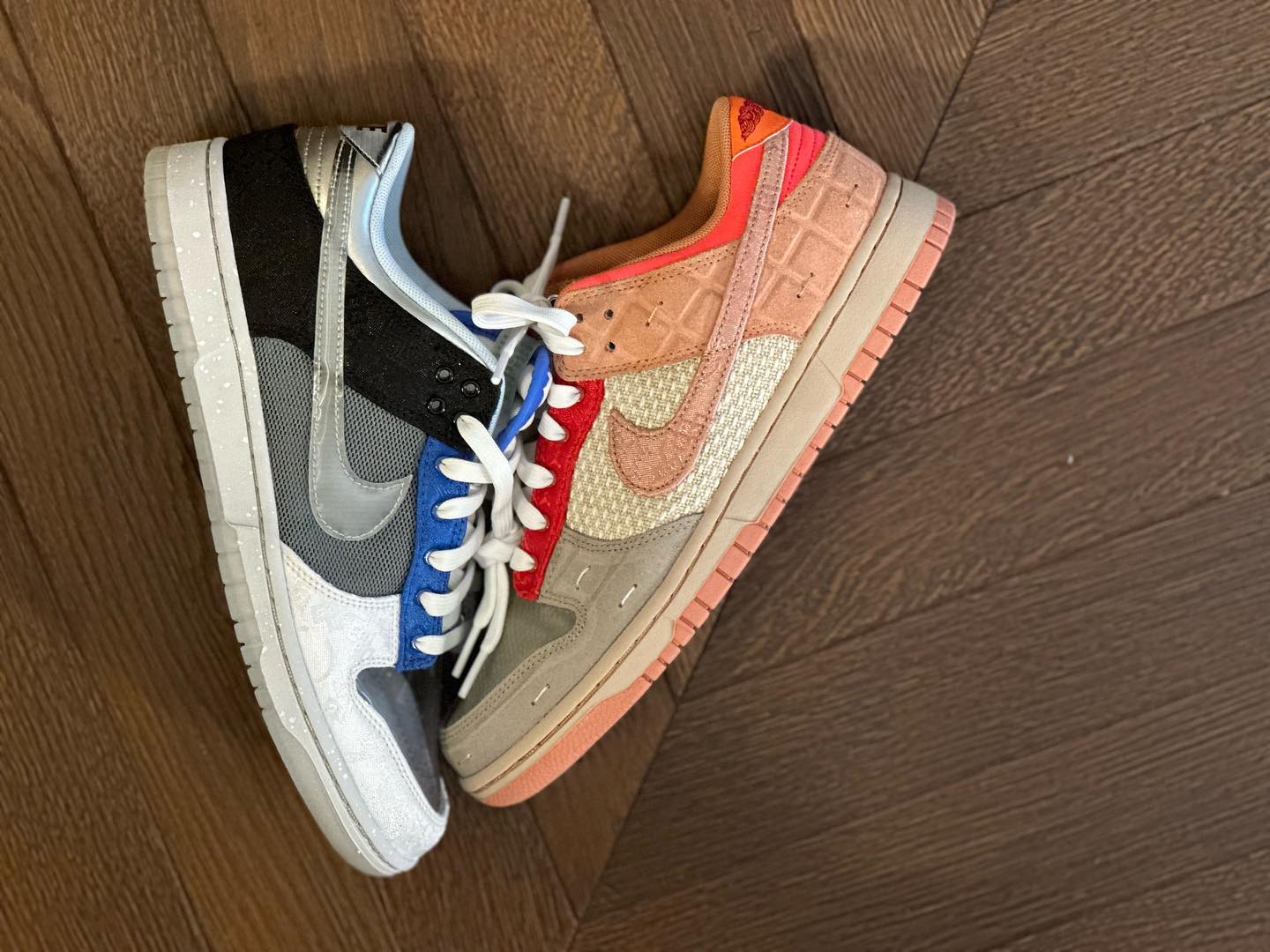 伴随着传闻的发售日期临近,近日冠希再度晒出全新 CLOT x Nike Dunk Low “What The” 实物图。