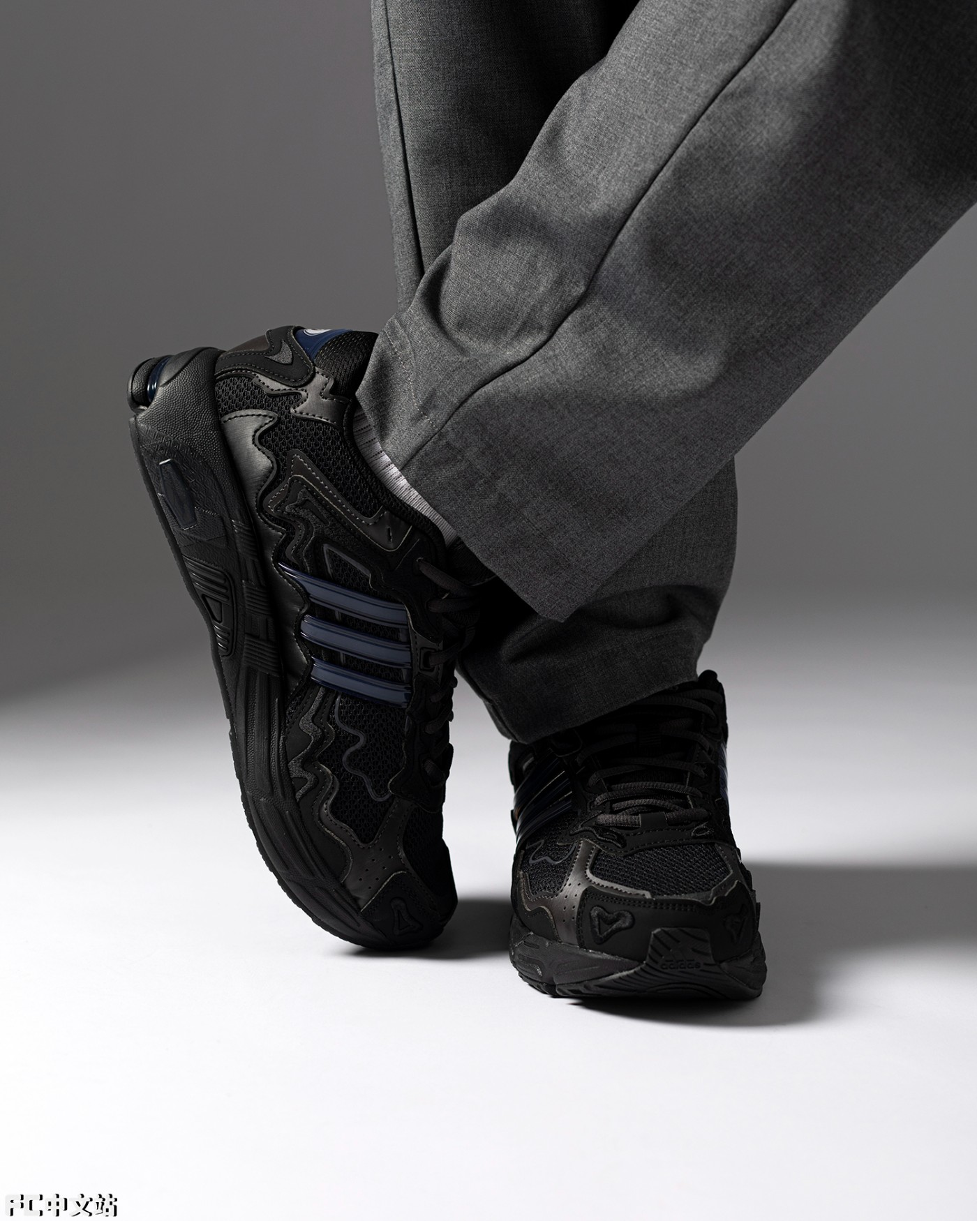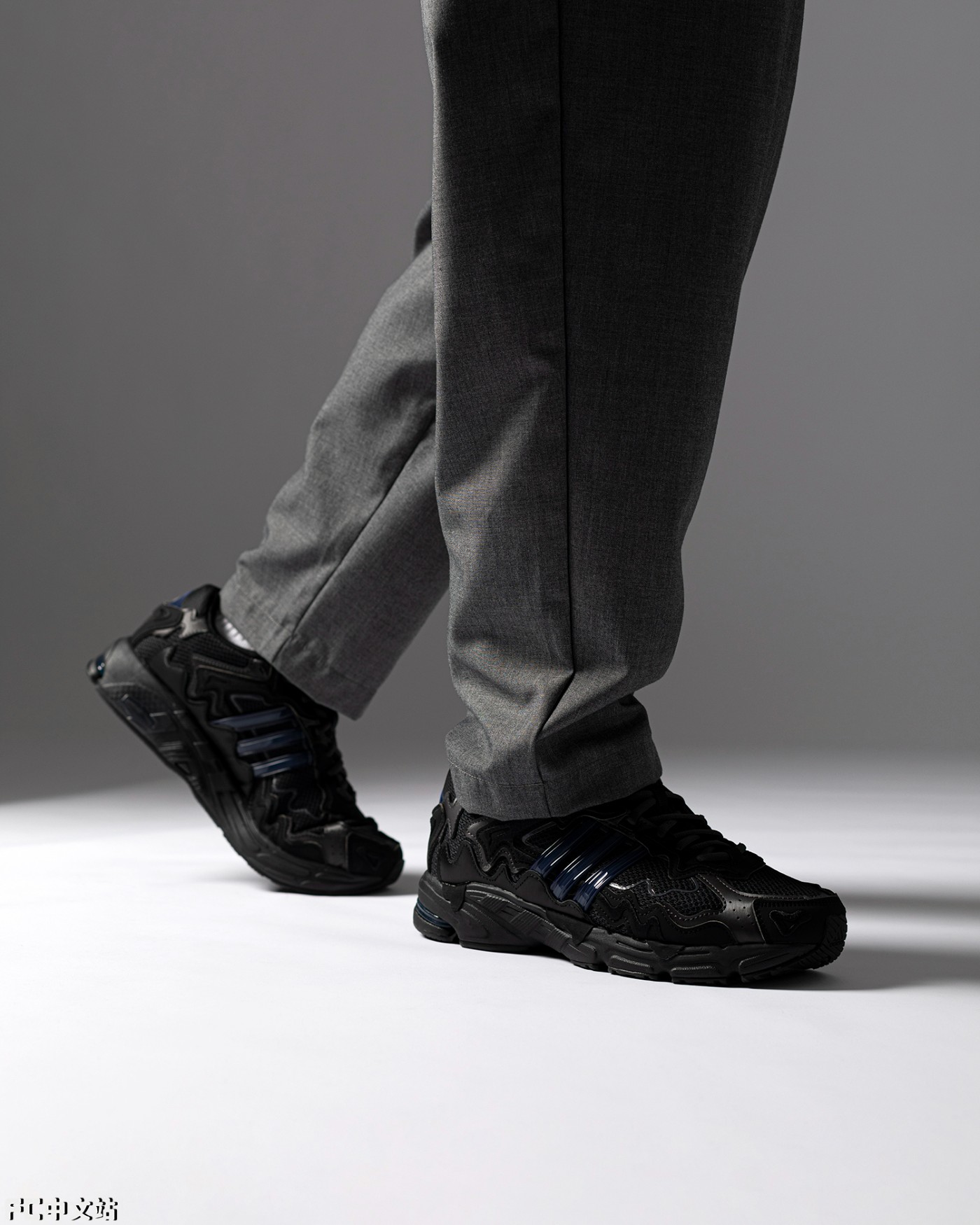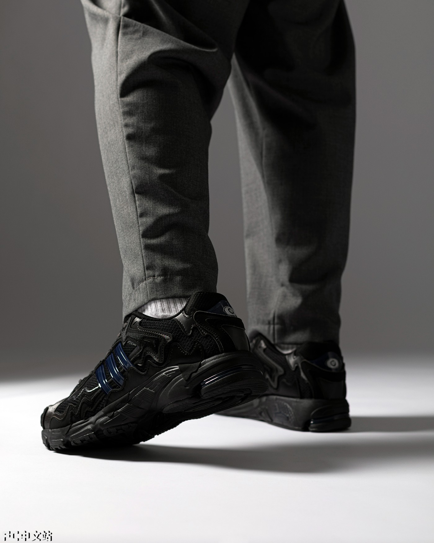 并不是通体黑色,侧边深蓝色三条杠点缀的恰当好处,让鞋身色彩更为丰富。