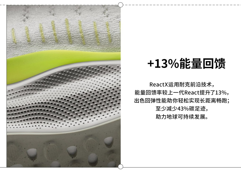 即便是长时间的持续运动,ReactX 都能源源不断地为跑者提供稳定的缓震与能量输送。