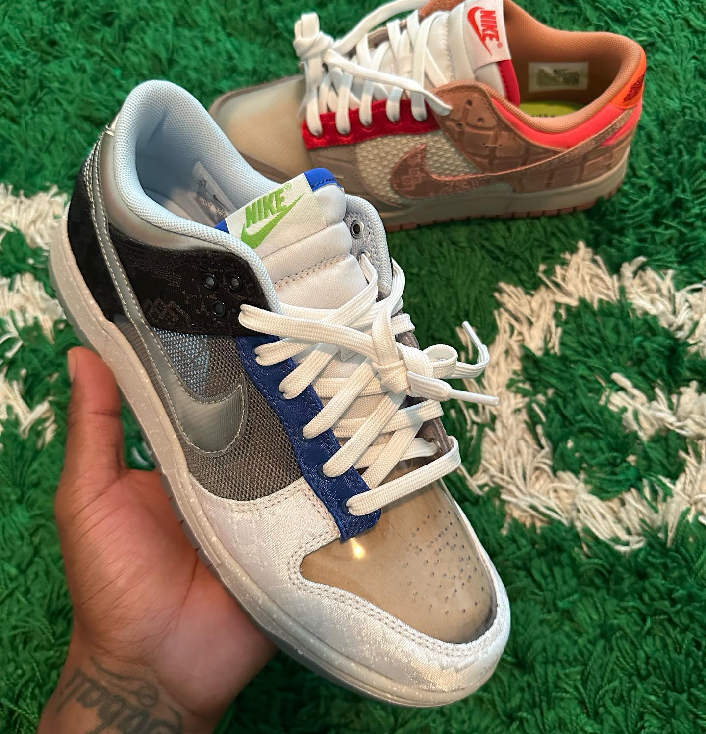 而这双鞋正是 CLOT x Nike Dunk Low “What The”,纵观球鞋圈历史,能够让 Nike 祭出最强融合配色 What The 的可真真是少之又少。