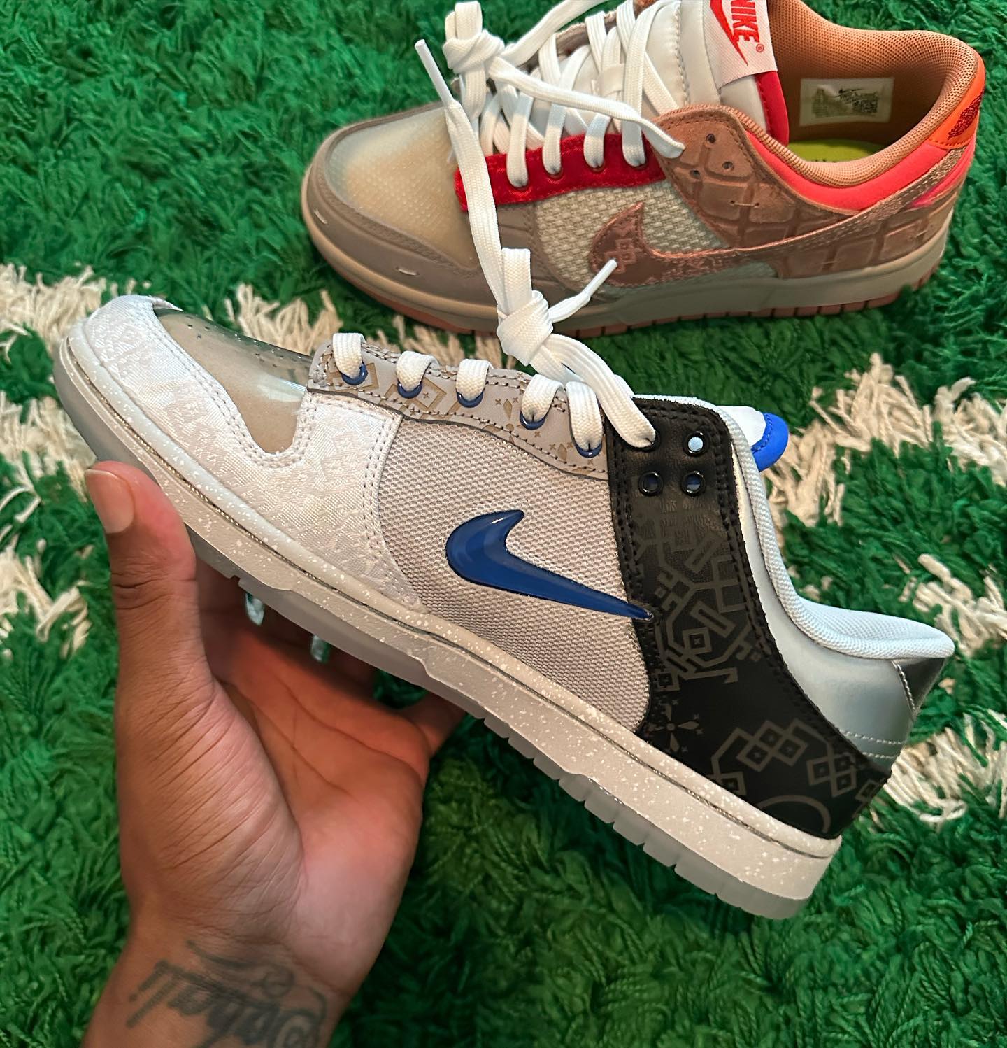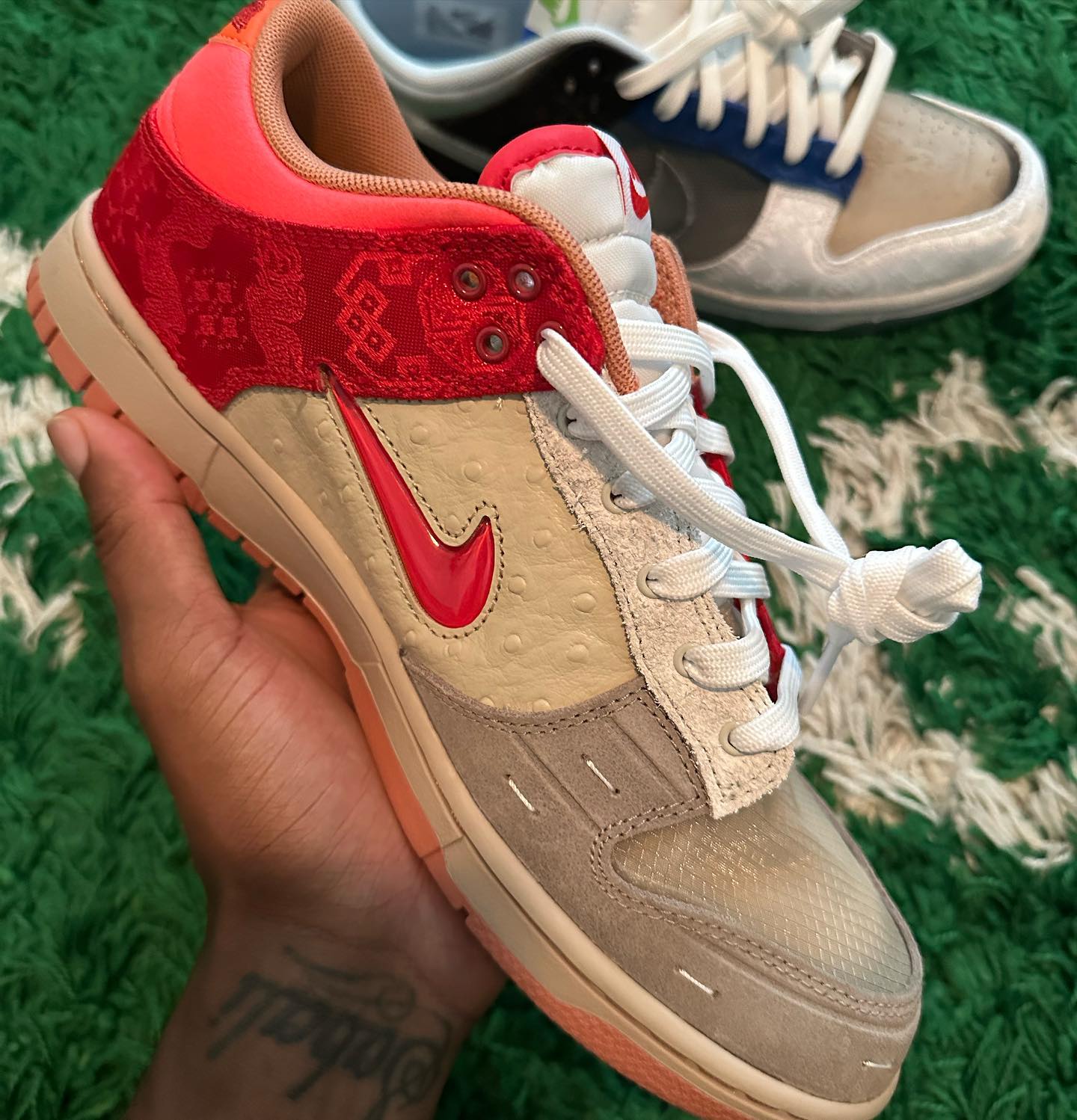 近期,这双全新的 CLOT x Nike Dunk Low “What The” 终于曝光了高清实物图,各类细节终于看清了!