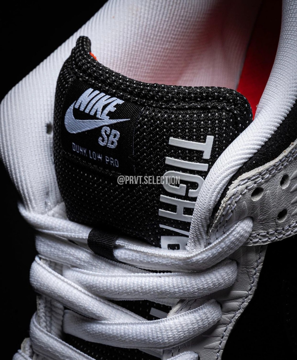 鞋舌也进行加肥加大处理,并以白色斑点和 TIGHTBOOTH Logo 加以装饰。