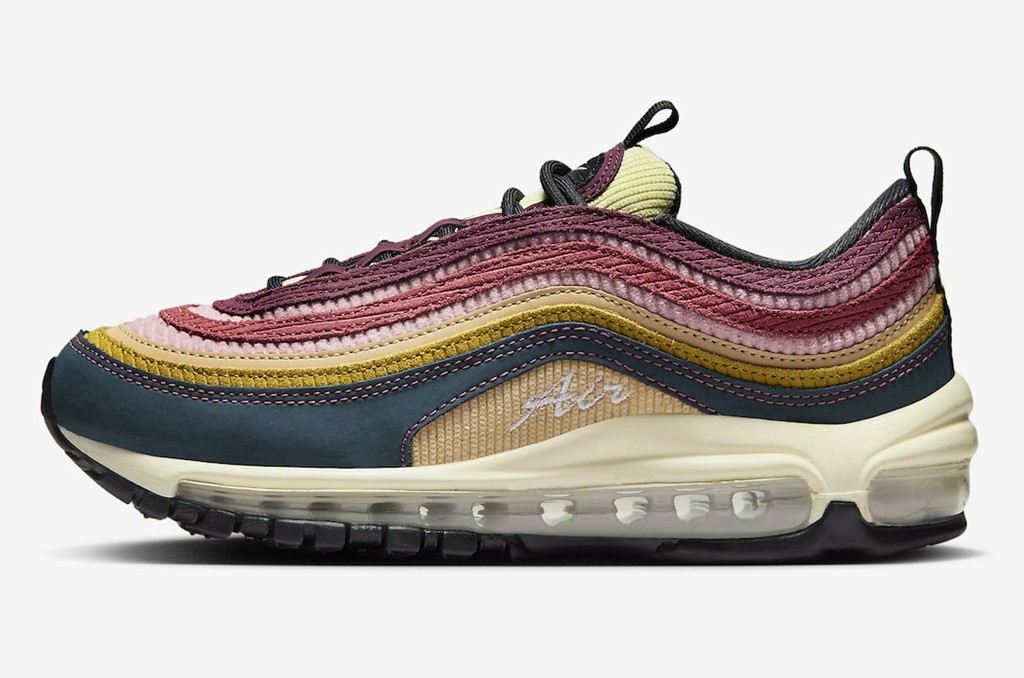 近日,一双全新配色 Nike Air Max 97 释出官图,再一次将灯芯绒材质带回!