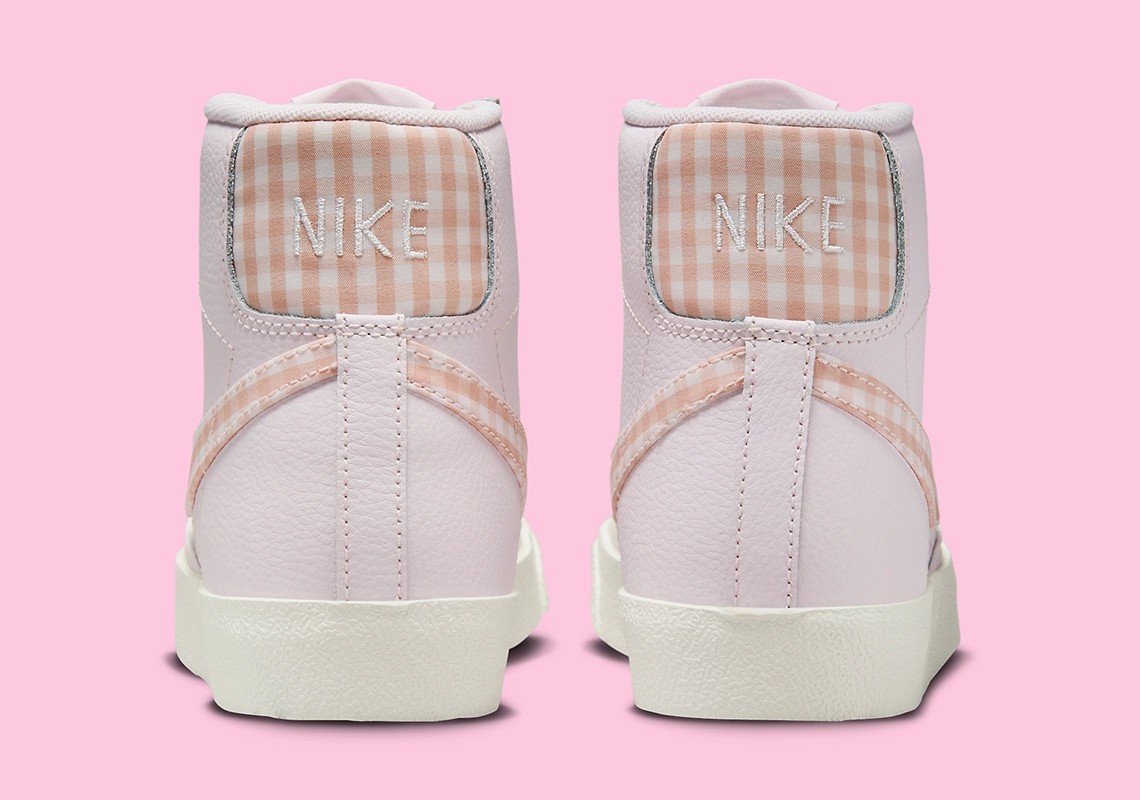 材质上使用大面积皮革覆盖,鞋侧 Swoosh、鞋跟的格纹丰富了整体层次。