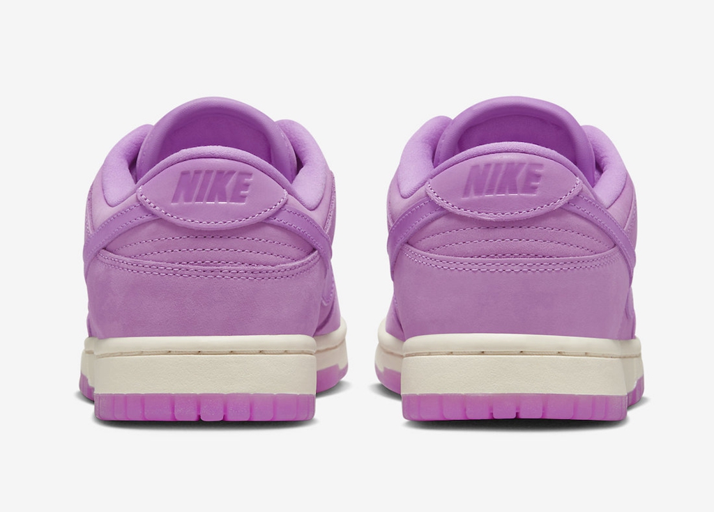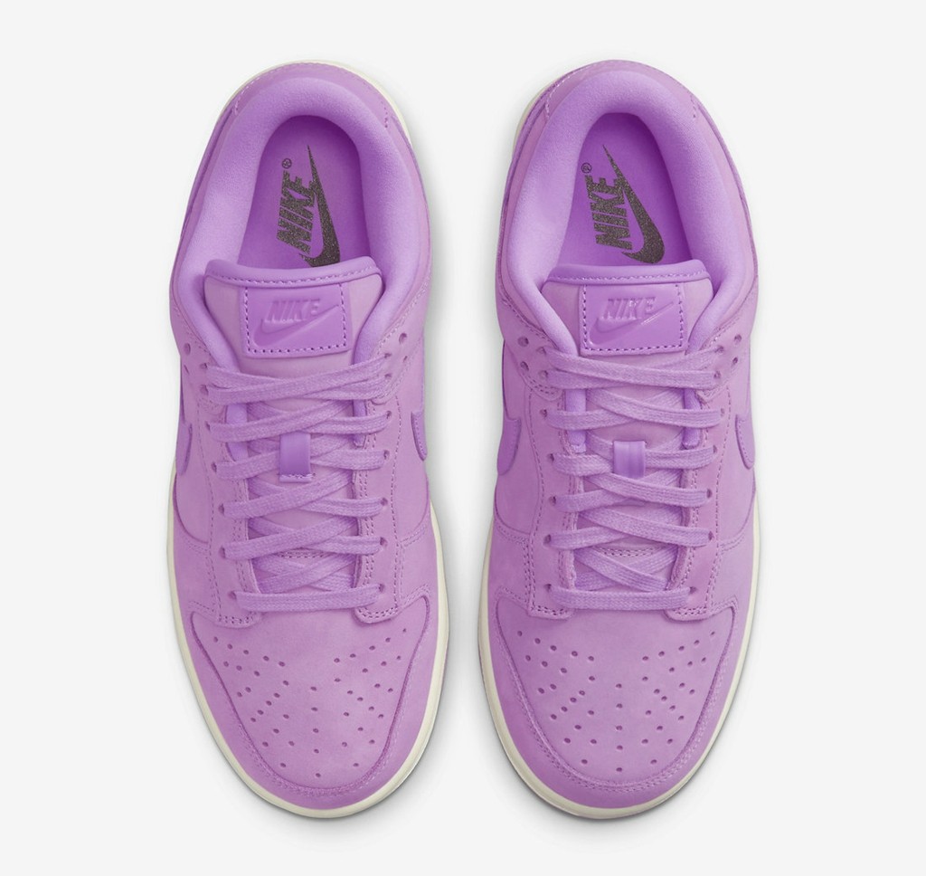 整个鞋面全部覆盖鲜艳的紫粉色,并且还采用了麂皮材质强调质感。