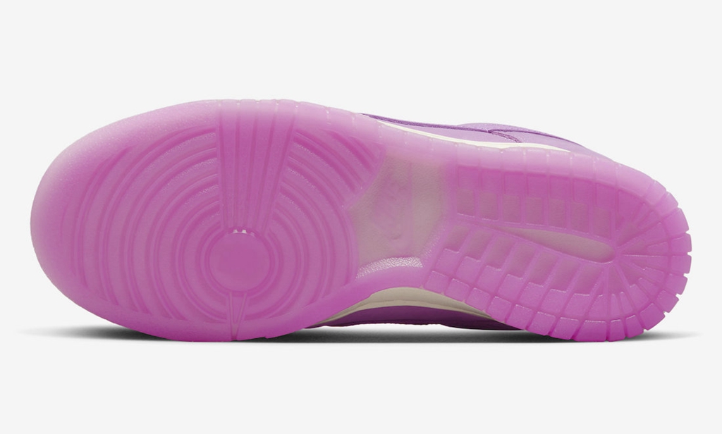 中底保留了经典白色,并搭配半透明粉紫粉色外底收尾,完善设计。