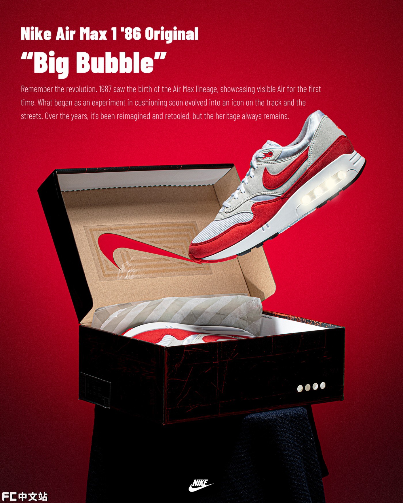 在今年三月份的 Air Max Day 上,Nike 将这双富有传奇色彩的 Air Max 1 ’86 “Big Bubble” 重新带回。