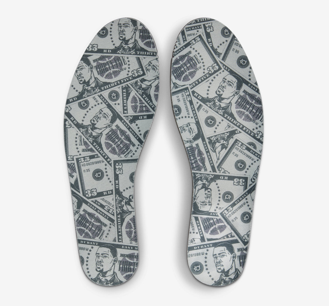 鞋垫则是用美金图案覆盖,头像还换成了杜兰特的卡通形象,真绷不住了!