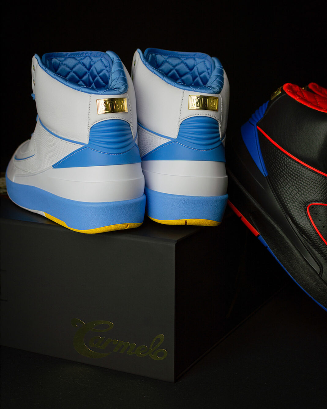 是为了庆祝卡梅隆·安东尼辉煌的职业生涯而打造的两双全新 Air Jordan 2。
