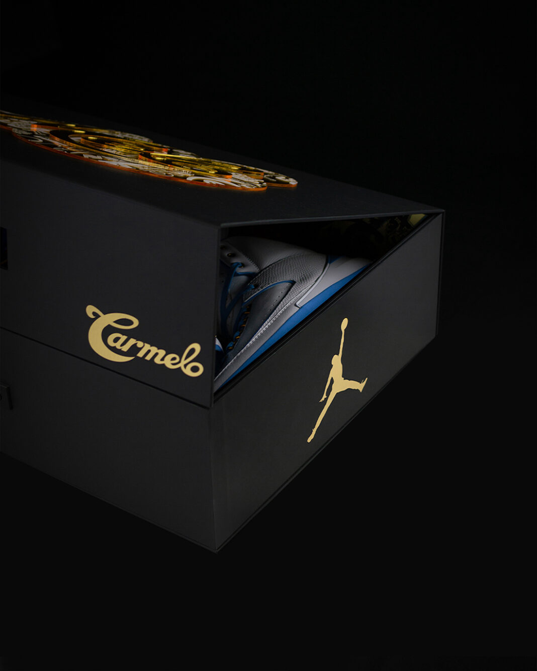说回鞋款,该套装的配色以丹佛掘金队和纽约尼克斯队为灵感,向卡梅隆·安东尼最早效力的两个最著名城市致敬。