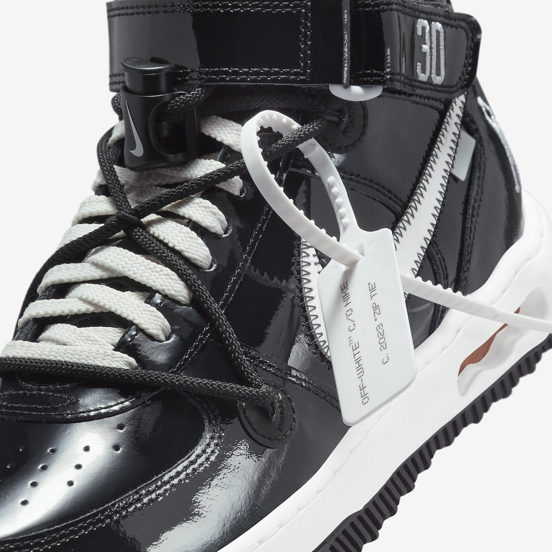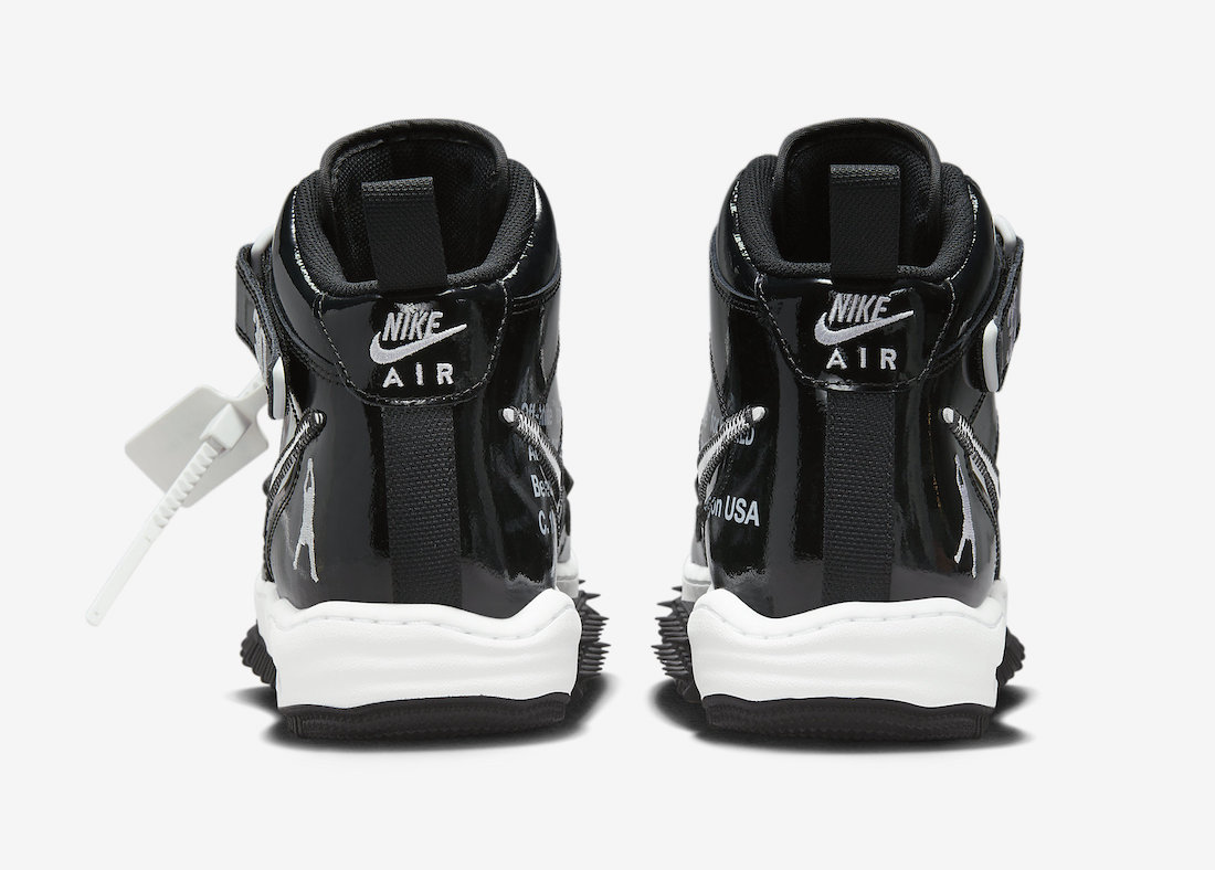 除此之外,OFF-WHITE x Nike Air Force 1 Mid 独有的鞋舌弹性锁扣、登山绳设计、溶解中底和解构钉鞋外底都保留了下来。