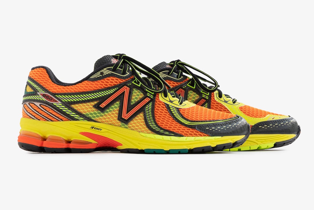此次全新联名,以 New Balance 旗下相对冷门的 New Balance 860v2 为蓝本进行创作,分别以荧光绿、橘色和白色示人,供不同人群挑选。