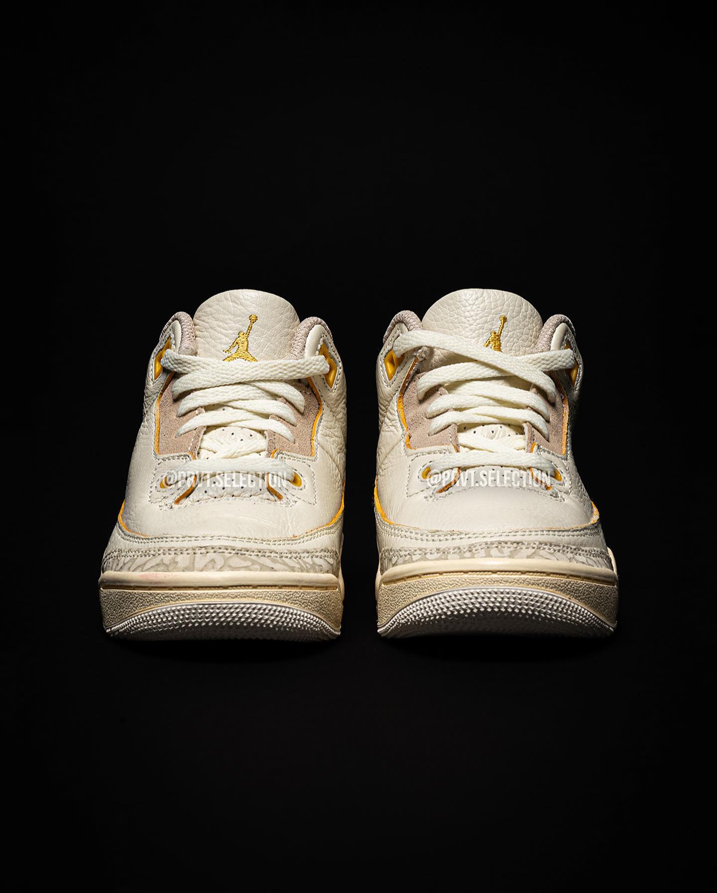 最后以 Air Jordan 3 传统的白色开窗式中底收尾,完善整体造型设计。