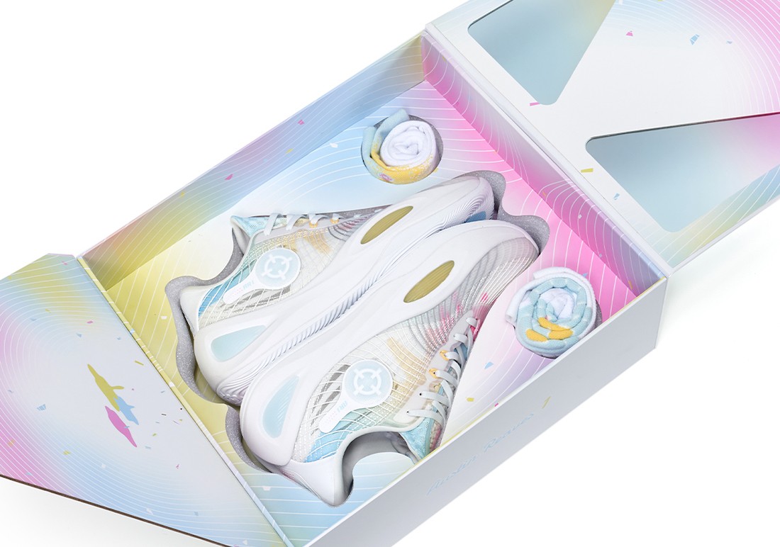 整双鞋配色灵感来自里夫斯家乡阿肯色州的冰激凌美食,采用大面积白色搭配蓝粉黄点缀,十分适合在炎炎夏日上脚。