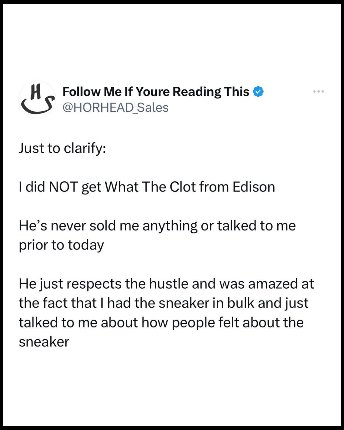 此后 @horhead_sales 连发两条推特明确表示并不是从 CLOT 拿到的鞋。