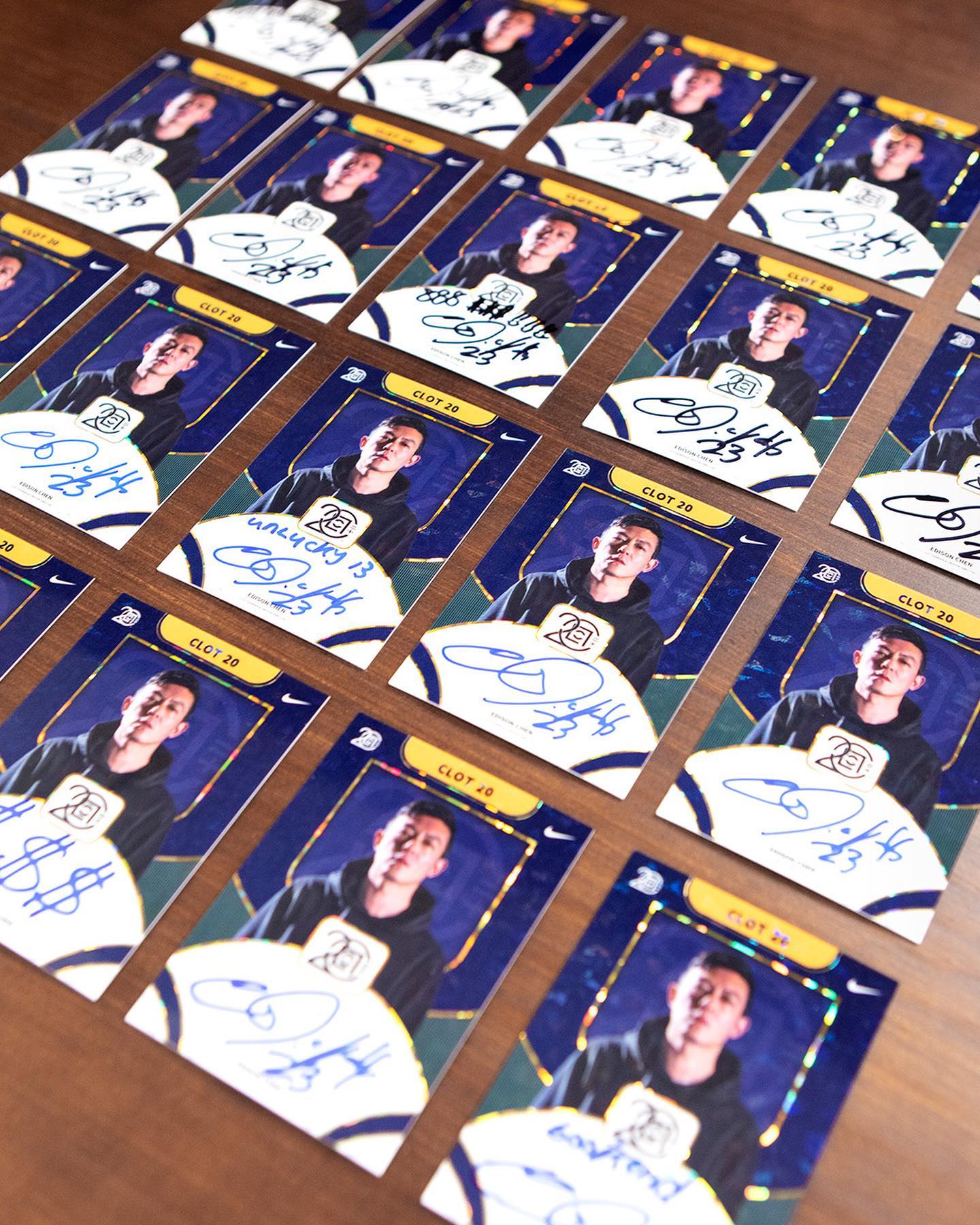 而同样珍贵的,还有两款带限量编号的冠希签名卡。其中陈冠希亲笔签名版本仅有 20 张,印刷签名版本 100 张。