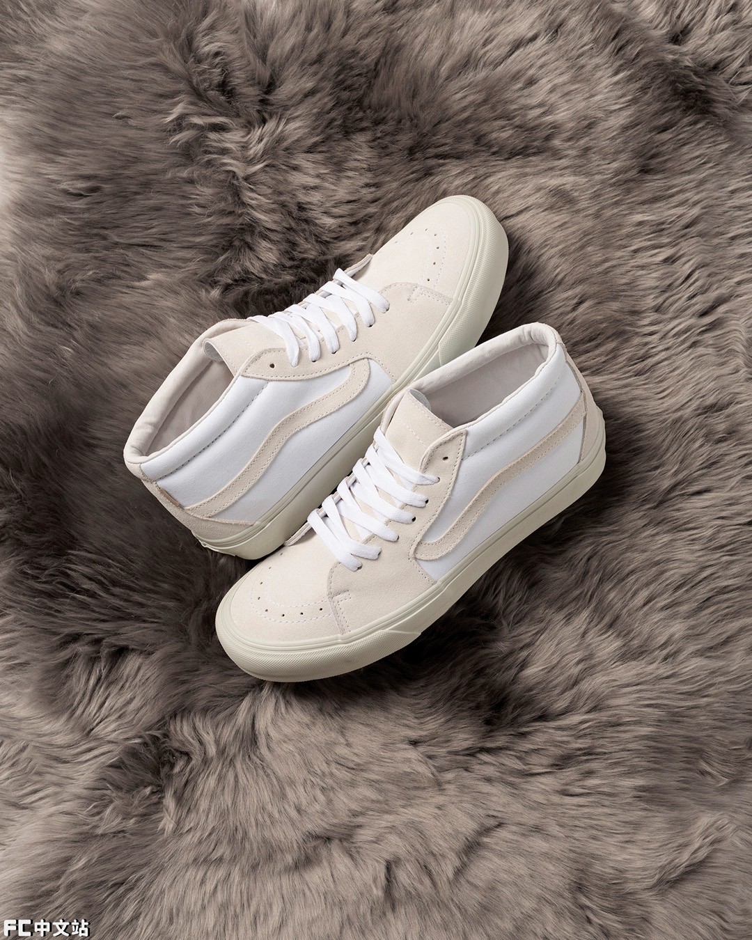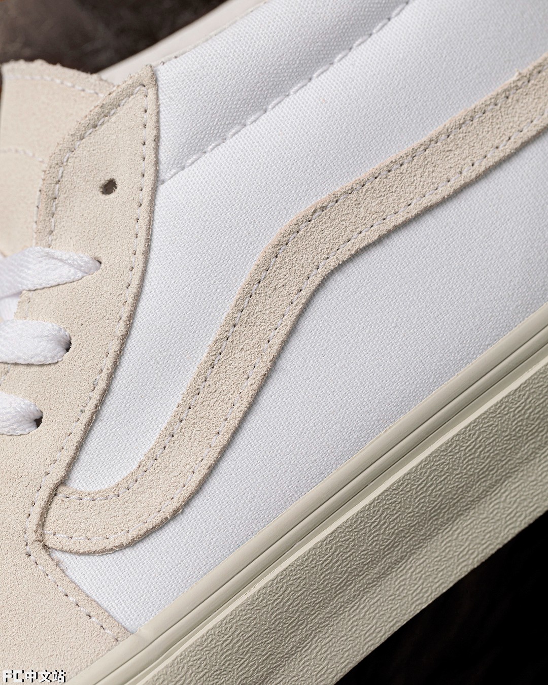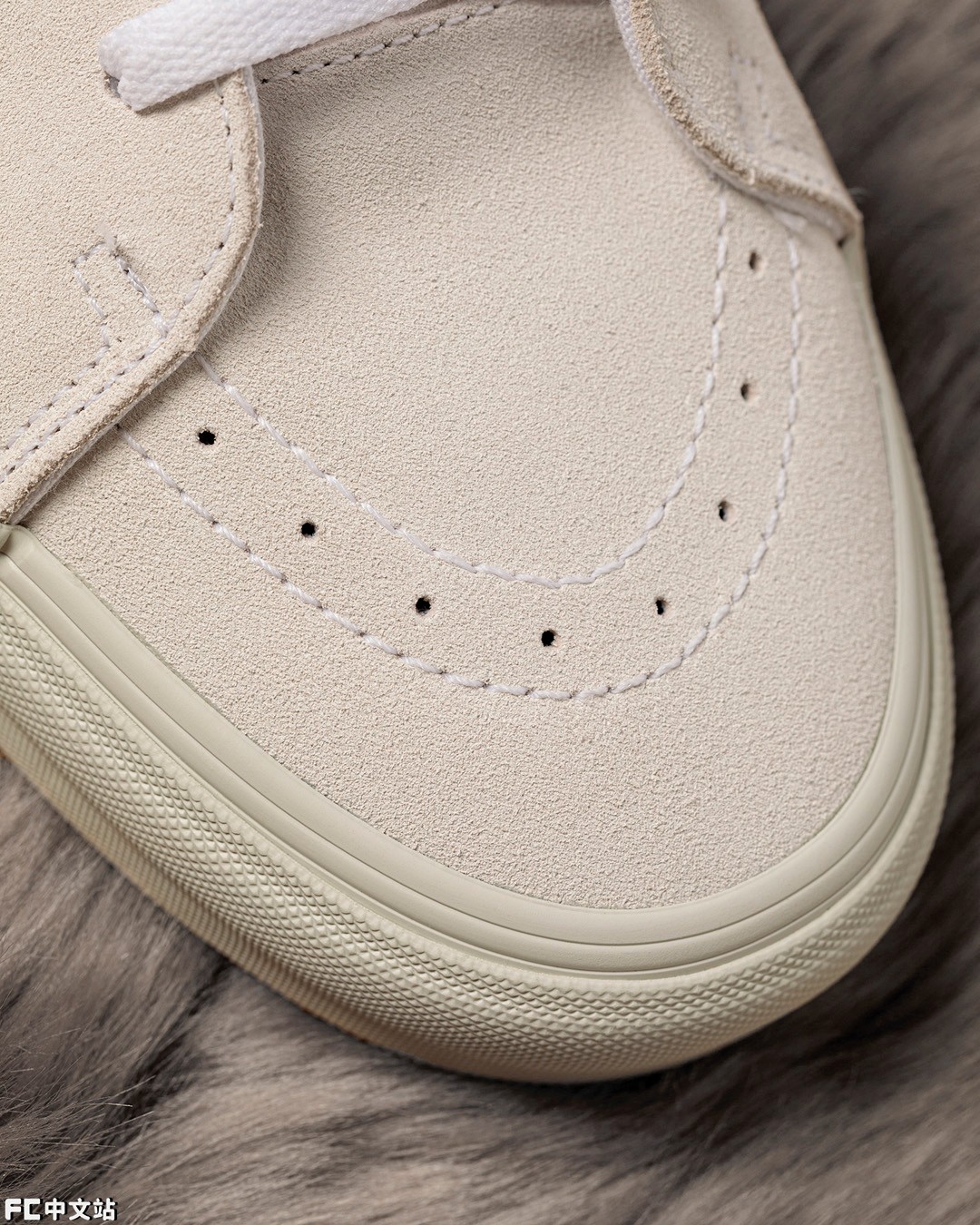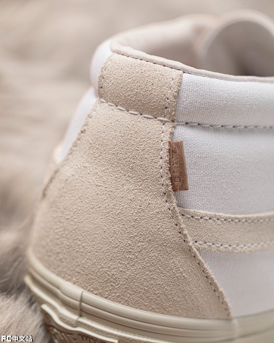 鞋面就和另外两双不同,不单单只是纯白造型,还覆盖了大面积的浅卡其色麂皮。