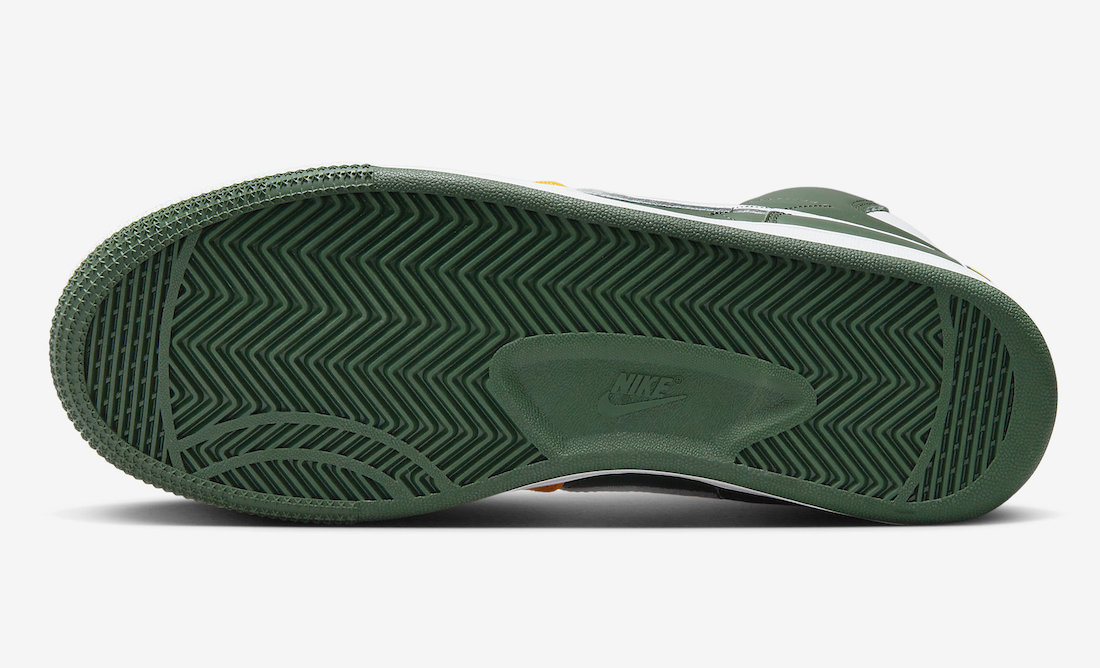 鞋身保留了原汁原味的超音速队主场配色方案,以黄、绿装扮,同时白色 Swoosh 和中底与鞋身形成对比,视觉效果十分 OG。