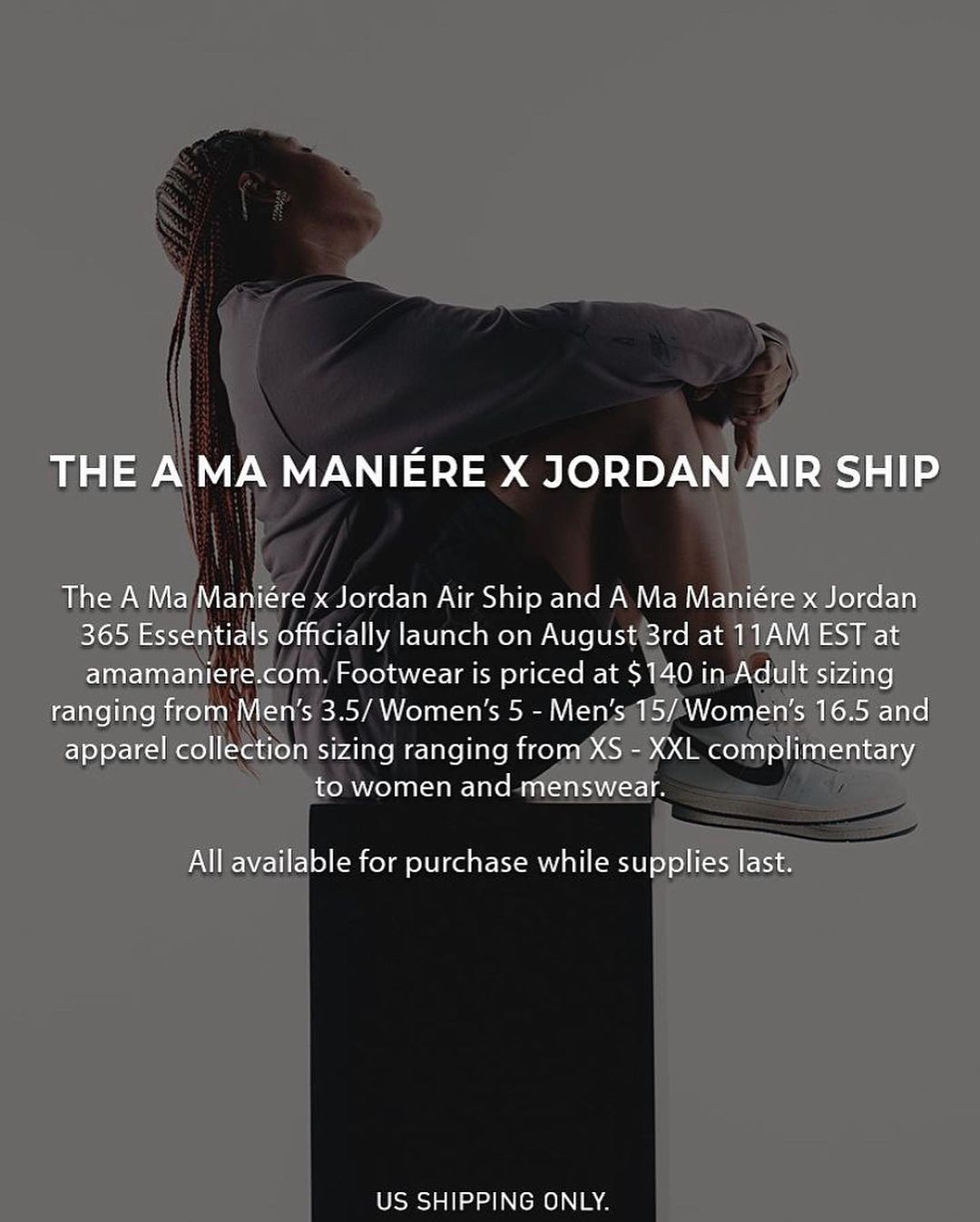 据悉,全新 A Ma Maniére x Jordan Air Ship 即将开启抽签,定价为 $140 美元,感兴趣的玩家不妨留意。