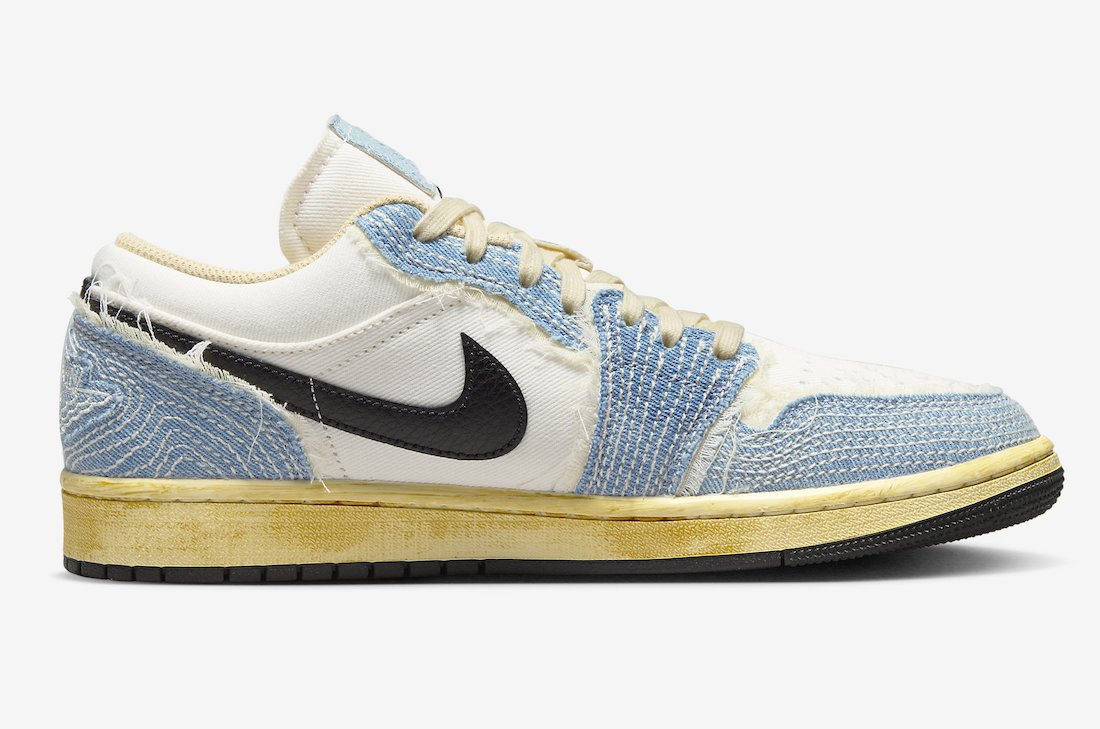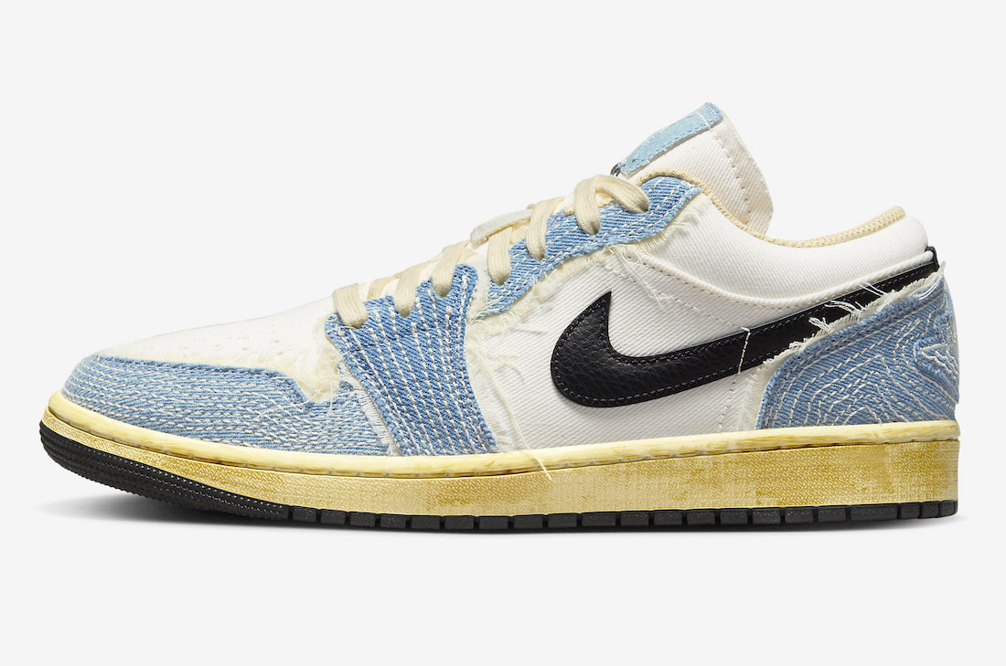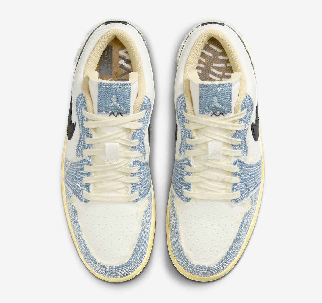 鞋身选择白色牛仔布和蓝色单宁材质组成,呈现出的质感在 Air Jordan 1 上十分罕见。