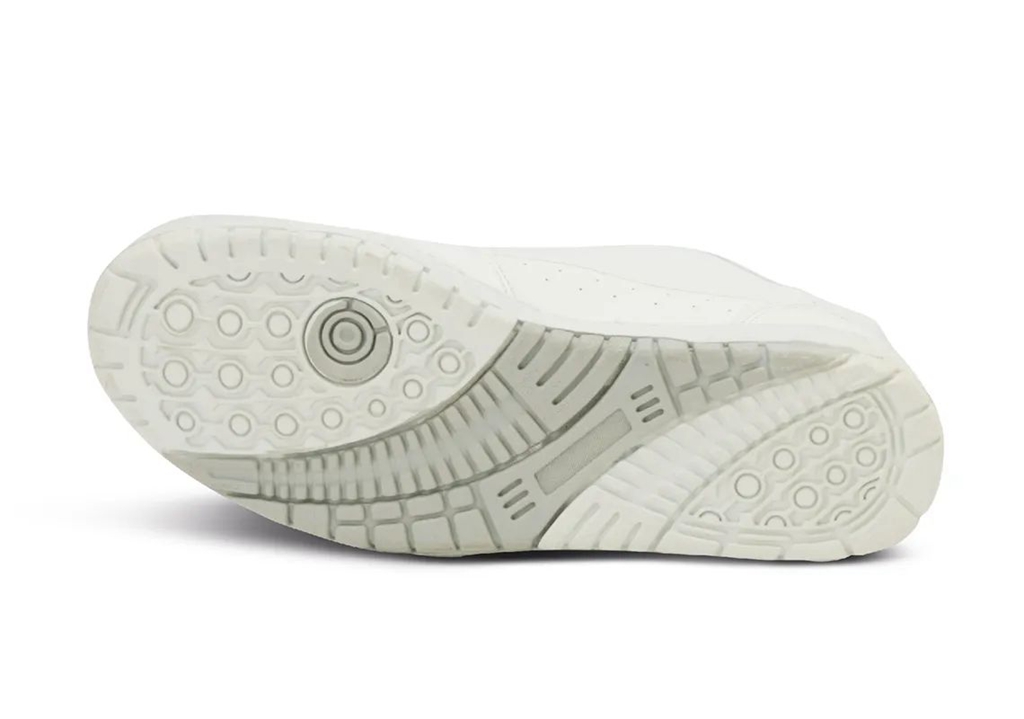 这双鞋在当今的眼光来看,设计其实并不出彩,就是一双复古鞋再加上苹果公司 Logo 刺绣。