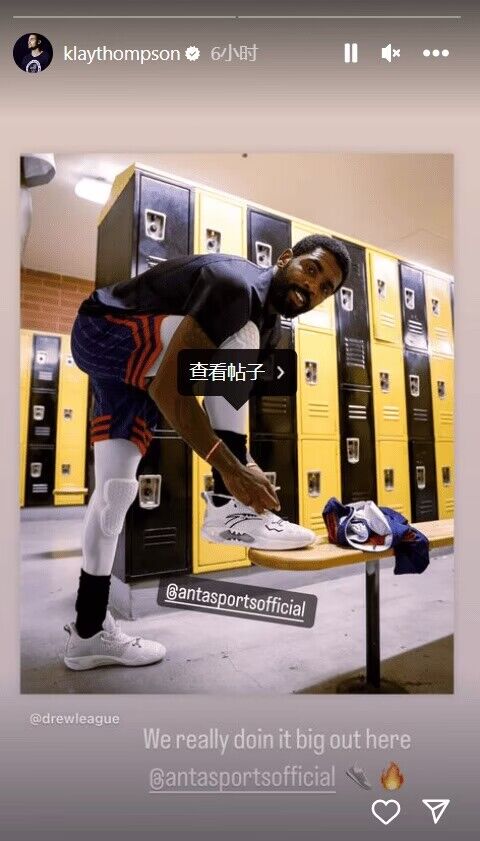 赛后,同为安踏代言人的克莱·汤普森也转发了欧文的照片,并配文称:“We really doin it big out here!”(我们真的在做大事!)