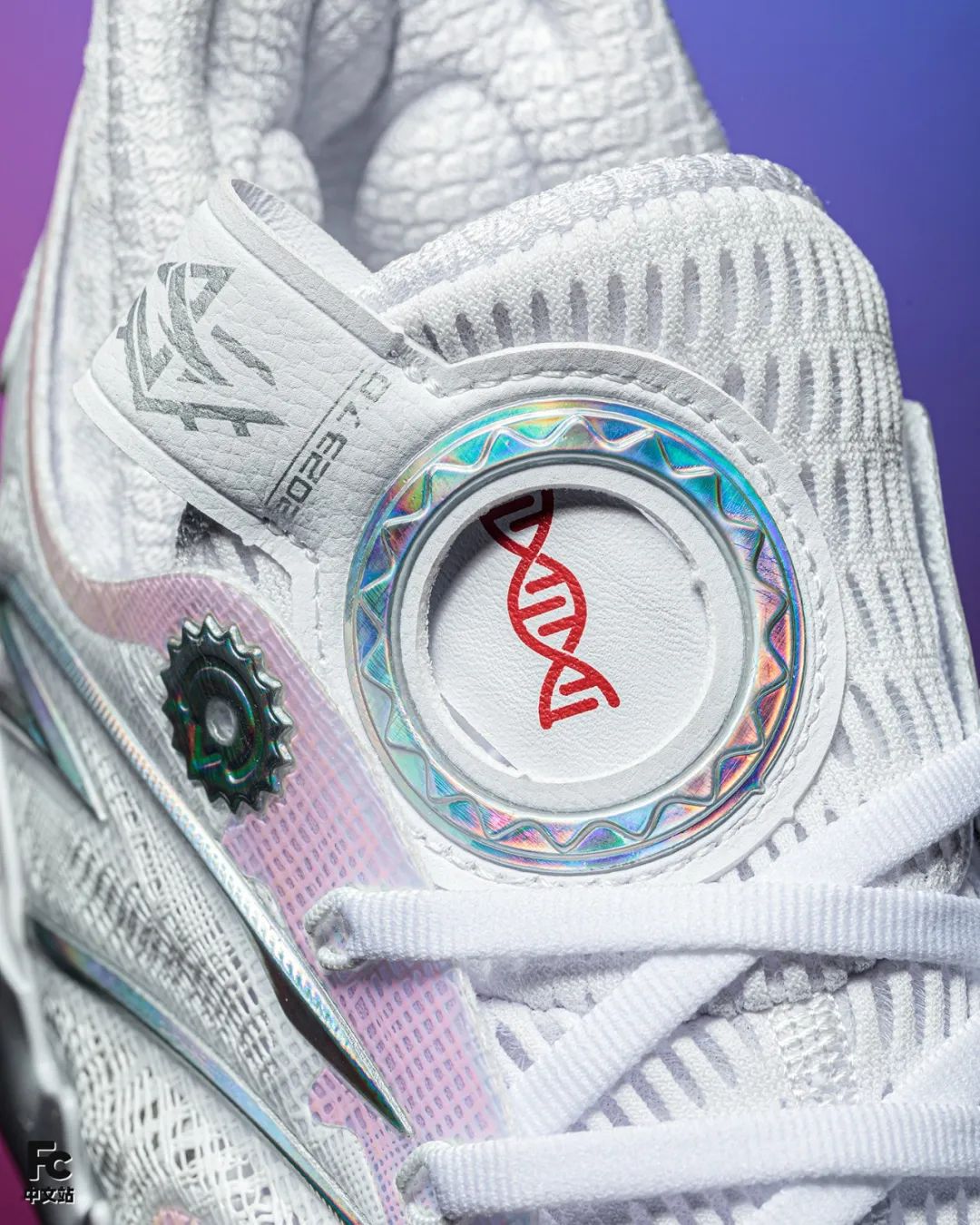 鞋舌采用鸳鸯的方式呈现,DNA 螺旋图案与中文 “传承” 二字,完美将古典东方元素与现代化设计融为一体。